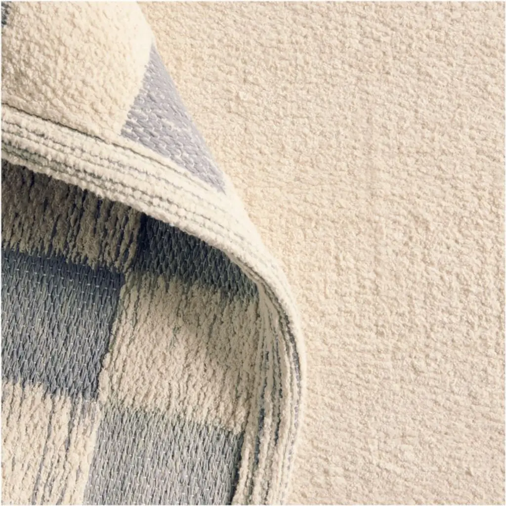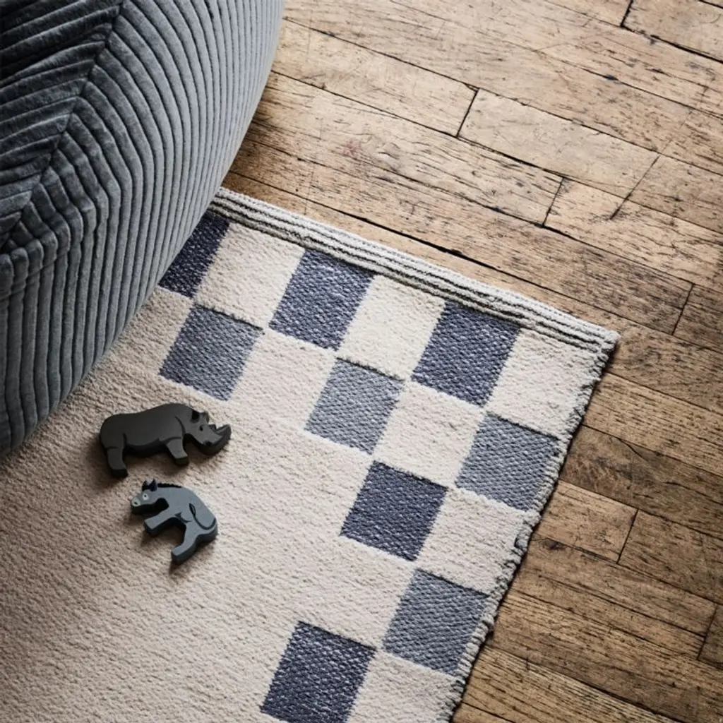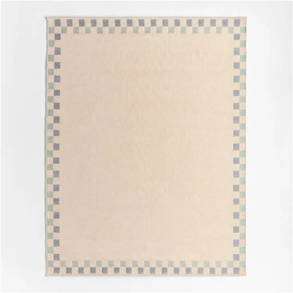 Try it on first. Because color representation may vary by screen, using a swatch is an easy way to see exactly how your favorite rugs will look in your home. Our rug swatches ship free and can be returned online or at a store near you for a full refund. It's fast, easy and free.Inspired by classic racing flags, this rug's two-tone checkered border brings a modern, graphic touch to bedrooms, playrooms and nurseries alike. Handwoven in a chenille-cotton blend, the flatweave construction creates a silky texture with a subtle sheen and ultra-soft cushioning underfoot. It's a fresh foundation that's built for comfort and everyday adventures.