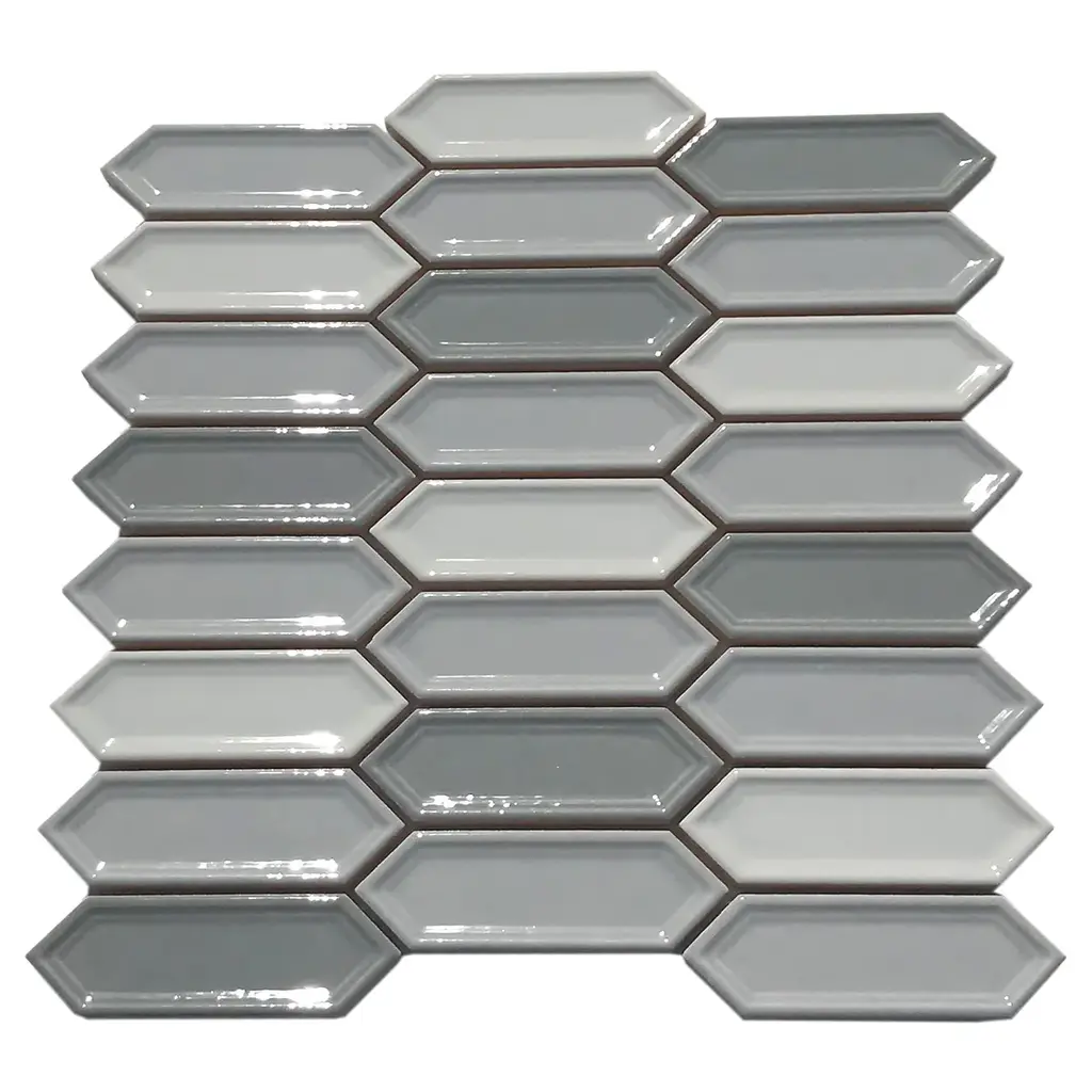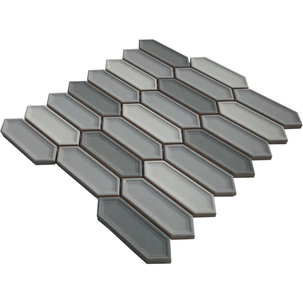 Forio 1.2" X 4.2" Picket Glossy Porcelain Mosaic Tile - Sample - Grey/silver