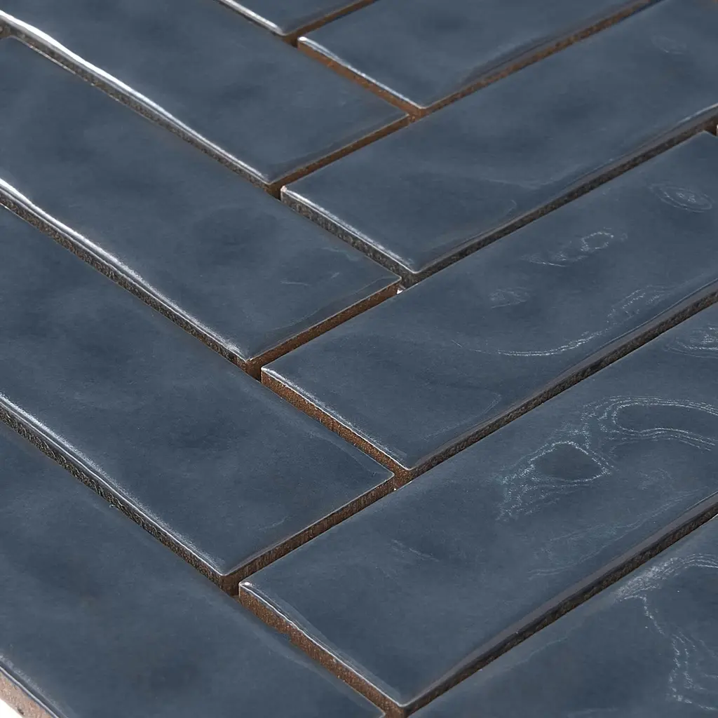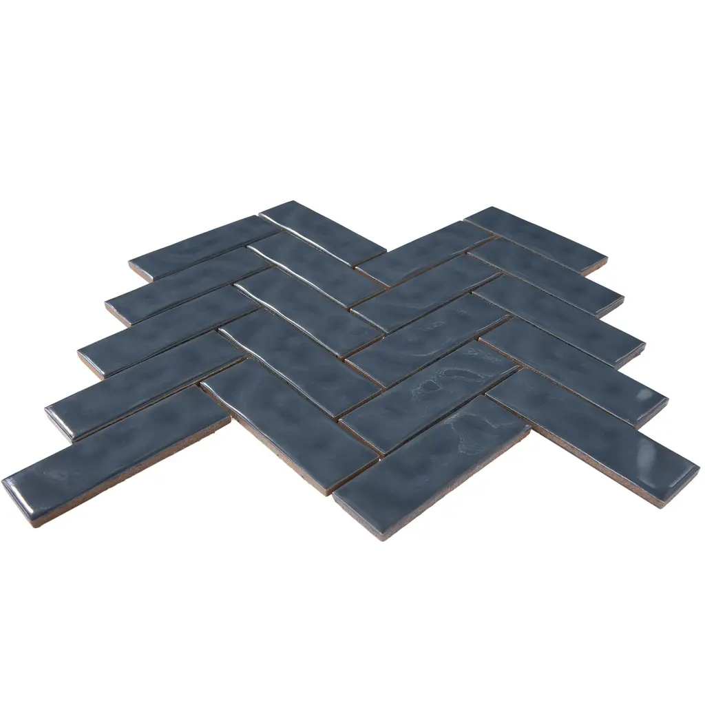 Forio 1.35" X 4.35" Herringbone Glossy Porcelain Mosaic Tile - Sample - Blue