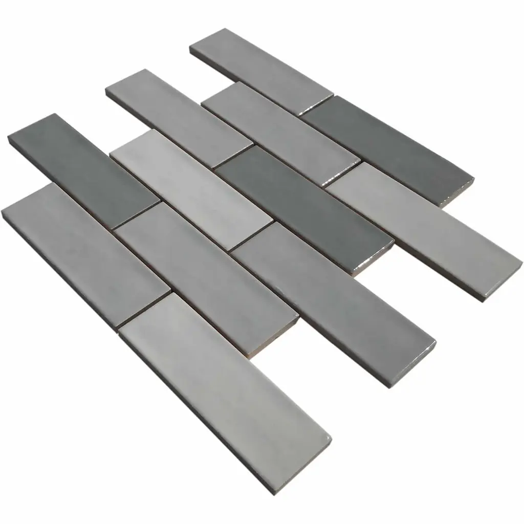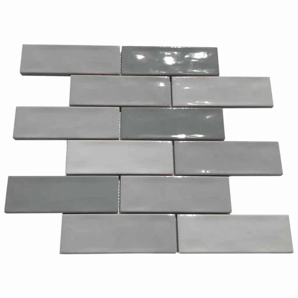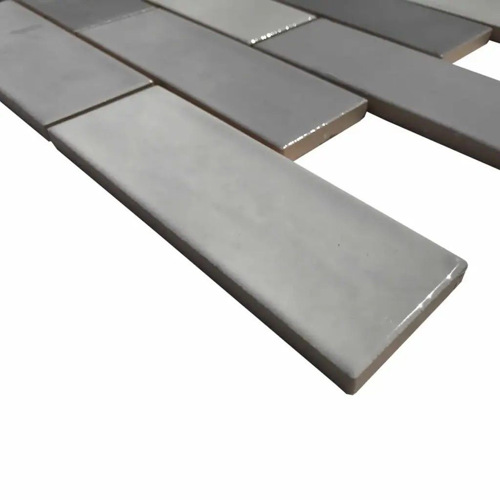 Forio 2" X 6" Brick Glossy Porcelain Mosaic Tile - Sample - Grey/silver