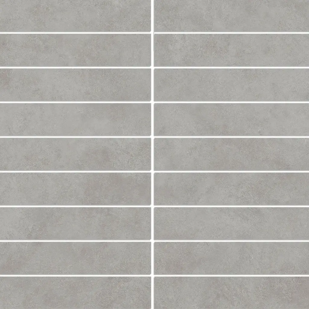 Clean lines, soft color, and a smooth matte finish—that's the foundation of the Foundry collection. Made in Spain from durable porcelain, this series brings a modern, minimal look that works across any space. Available in five versatile shades — Denim, Gris, Taupe, Salvia, and Ceniza — Foundry is designed to quietly support your style without competing with it. Choose from large-format 24" x 48", classic 12" x 24", a 1" x 6" mosaic for added texture, and a matching bullnose to complete the look. FEATURES: One mosaic sheet covers 0.97 square feet (approx.) Porcelain, mosaic, rectangle, matte, rectified edge tile for floor and wall use Impervious and waterproof; Not suitable for outdoor use but are resistant to most elements Matte finish with a V2 slight variation Made in Spain Porcelain body with a smooth matte finish Available in five versatile colors: Denim, Gris, Taupe, Salvia, and Ceniza Comes in 24"x48", 12"x24", 1"x6" mosaic, and 3.5"x24" bullnose Modern, minimal design that works in a variety of spaces Great for interior and bathroom floors and walls, feature walls, kitchens and backsplashes Durable and easy to maintain Approved for residential and commercial indoor installations Easy to install 12" x 12" decorative porcelain mosaic tile DIMENSIONS: Mosaic sheet: 12 inches L x 12 inches W Individual tile size: 1 inch L x 6 inches W Surface area per piece: 0.97 square feet Sample tile size: 4 inches L x 4 inches W