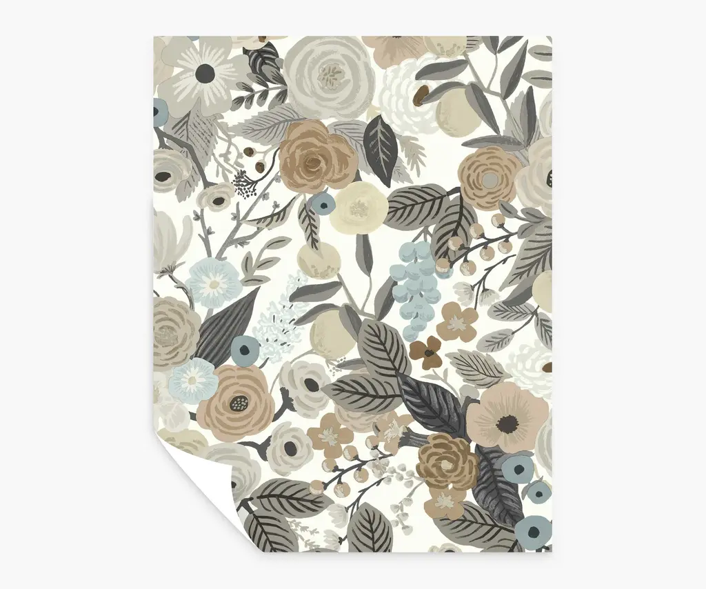 8 × 10" sample of our Garden Party wallpaper. Our classic floral, Garden Party, is an array of bold bouquets and fruit. The scale makes a statement in both bright and neutral colorway options. Please note that wallpaper samples are cut at random, and pattern placement of the sample you receive will not match the photo featured here.