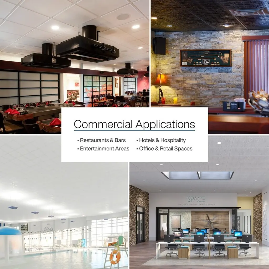 Genesis Ceiling Tiles are made from waterproof, vinyl material that prevents many of the issues caused with acoustic ceiling tiles. Our tiles are manufactured from white cellular PVC and have a smooth surface, making them not only waterproof, but washable and durable. Genesis tiles are made from material that is not susceptible to health hazards resulting from water and moisture. These suspended ceiling tiles have a Class A Fire Rating and are perfect for homes, basement ceilings, laundry rooms, commercial kitchens, food processing plants, healthcare and education facilities, marine applications, and high-humidity climates. Easy to cut and easy to install, our drop ceiling tiles are a great alternative to fragile and water damage-prone acoustic ceiling tiles or styrofoam ceiling tiles. Choose Genesis for a polished ceiling and a healthier you.