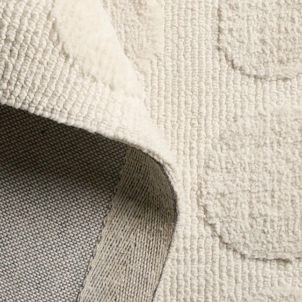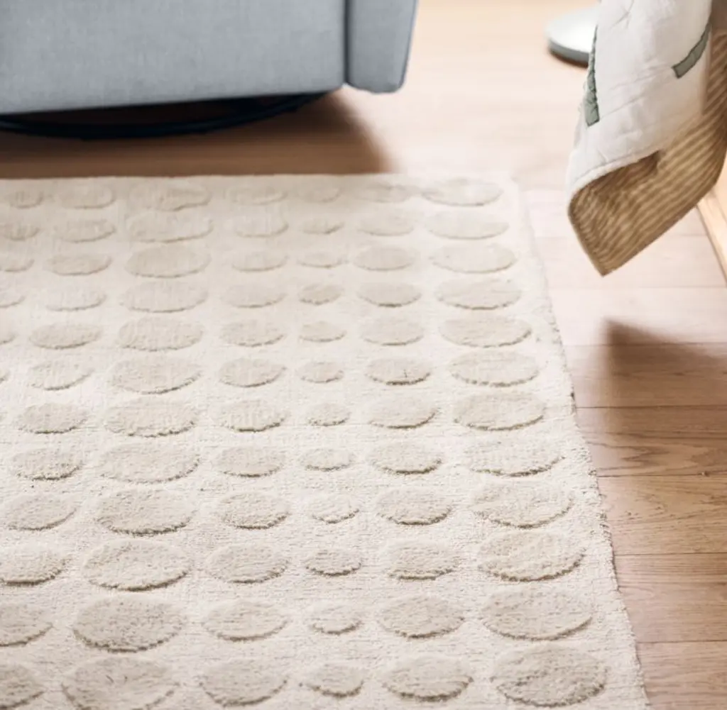 Try it on first. Because color representation may vary by screen, using a swatch is an easy way to see exactly how your favorite rugs will look in your home. Our rug swatches ship free and can be returned online or at a store near you for a full refund. It's fast, easy and free.We call the Geo Dotty Area Rug a performer for good reason. With its simple yet impactful tone-on-tone ivory pattern, it works in a wide variety of spaces and styles. Two pile heights create dimension and warm texture. And while parents will appreciate the durability of its easy-care microfiber construction, kids will delight in the velvety-soft feeling underfoot.
