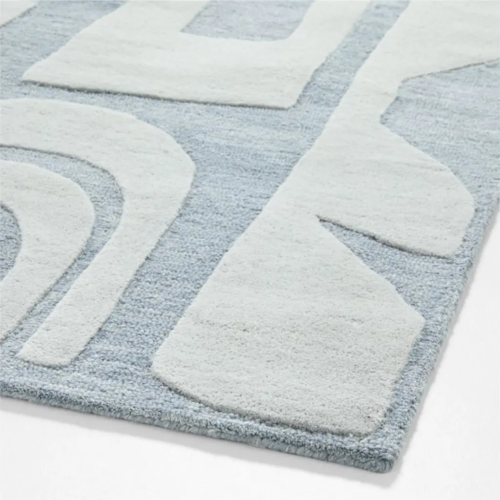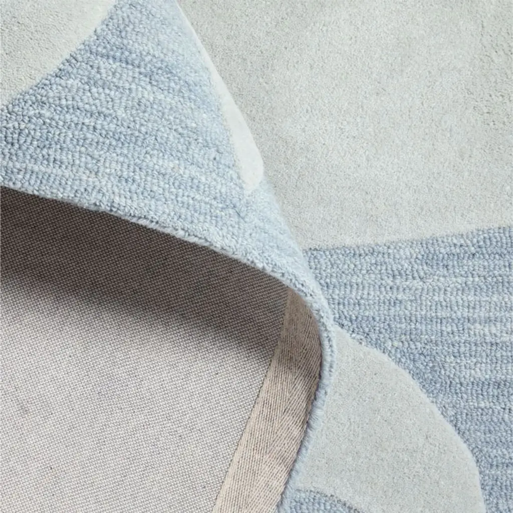 Try it on first. Because color representation may vary by screen, using a swatch is an easy way to see exactly how your favorite rugs will look in your home. Our rug swatches ship free and can be returned online or at a store near you for a full refund. It's fast, easy and free.Shape up any room with the modern, playful design and high/low texture of our two-tone Geometric Cutout Rug. The graphic shapes and durable wool construction make it an easy, carefree addition to high-traffic areas. Two different pile heights add depth and dimension to this hand-tufted rug in a dreamy blue hue, while providing a cushiony surface for playtime, reading time and all the fun times in-between.
