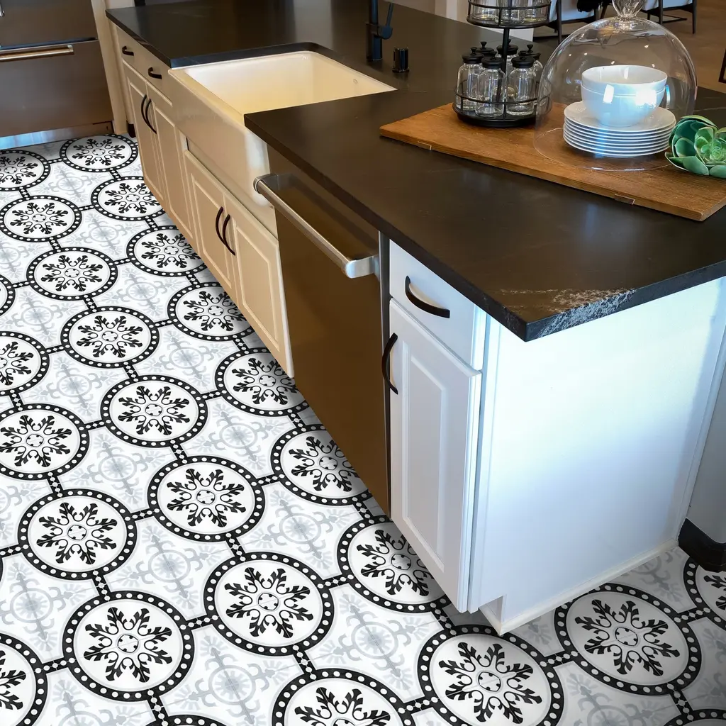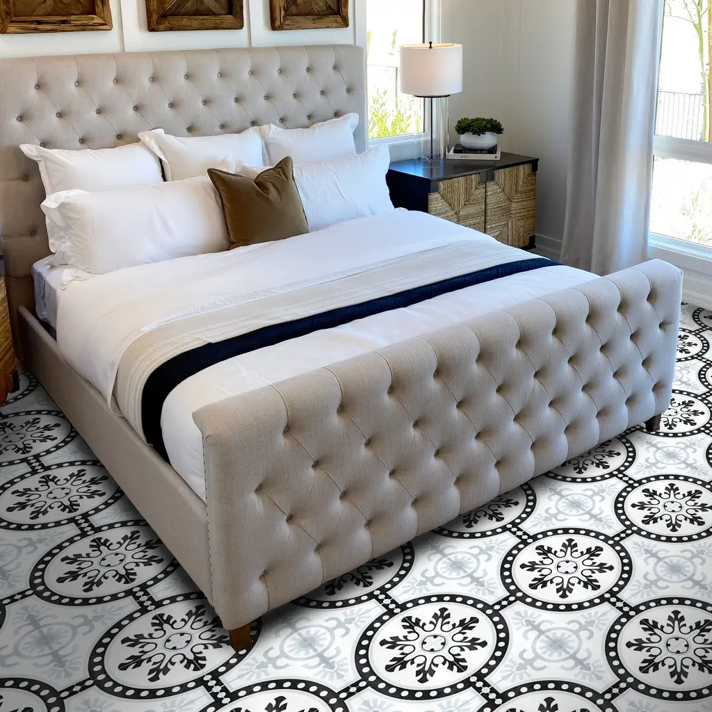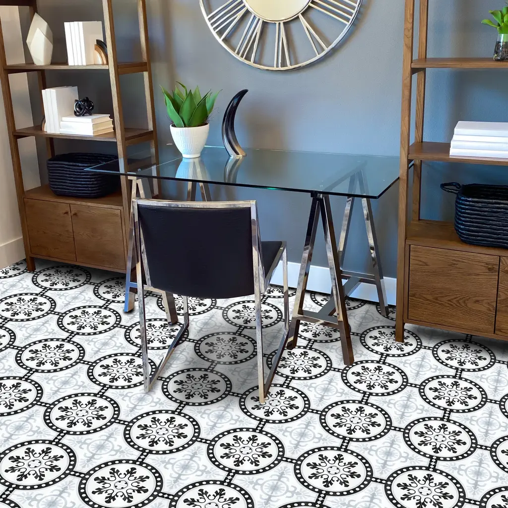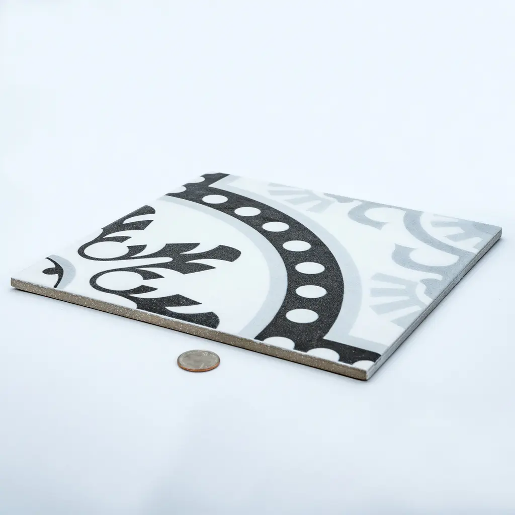 This playful geometric pattern works well in both contemporary and traditional environments and can be enjoyed both indoors and outdoors for many years. This tile will add a one of a kind look to any setting. You need 4 tiles to make the full pattern.Brand: Moroccan Mosaic and Tile HouseType/style: Floor and Wall Tile Materials: CeramicDimensions: 10 inches long x 10 inches wide x 0.25 inches thick (each) Square footage per tile/ box: 0.70/tile, 12 tiles per box (8.40 sq. ft. per box) Installation: Professional installation is recommendedPack/case of: 12 tiles per box Durable, Indoors/ Outdoor, high quality materials, environmentally responsible and resource efficient, low maintenance