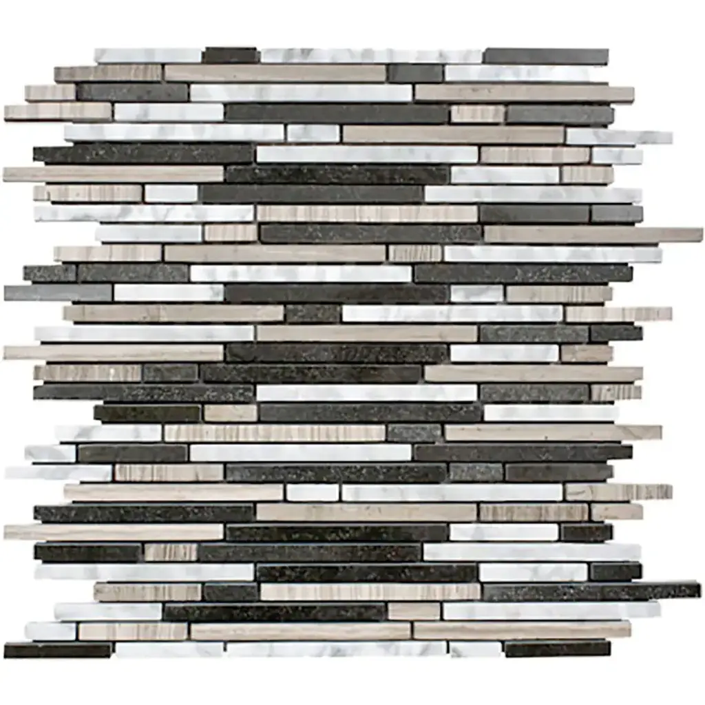 Gray-White-Taupe Marble Mixed Polished Random Strips - Sample - Multi-Color