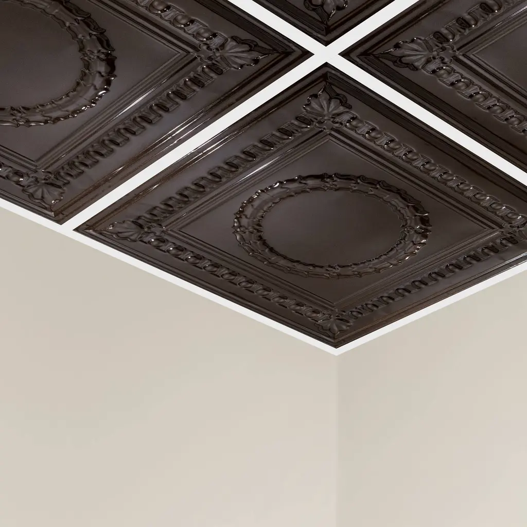 Great Lakes Tin Ceilings provide the classic look of yesteryear with authentic recreations that make a lasting impression in any space. The ceiling tiles are available in both nail-up and lay-in options in numerous styles and finishes. The nail-up tiles are easily applied with nails, screws, or glue. Finish options range from antique or gloss white to bronze burst and copper offerings. Two crown molding styles are also available and provide a finished look to your project. Panels can be cut with tin snips and allow homeowners to achieve a professional look at an affordable price. • Safer than standard tiles; Great Lakes Tin uses only premium-grade 29-gauge tin-plated steel, tested and awarded the Class A 1-Hour Fire Rating • Cut to fit any space; These tiles can be easily cut with tin snips, trimmed to any shape or size to fit your targeted area • Not just for ceilings; Great Lakes Tin tiles can be used to create an antiqued backsplash or rustic accent wall in your home; choose the finish that complements your decor and get to DIY-ing • Easy to install; Lightweight and durable, these tin tiles come in packs of five 2ft x 2ft panels, preventing the trouble and danger of dealing with bulky sheets of metal; simply drop in the tiles to create a beautiful new ceiling in no time; matching crown molding is also available • High quality materials; Tiles are made from genuine tin-plated steel, not plastic or foam board; achieve the rustic authenticity you envision with our one-of-a-kind tin ceiling panels; The Matte White tile has a soft, satin white finish with a matte topcoat