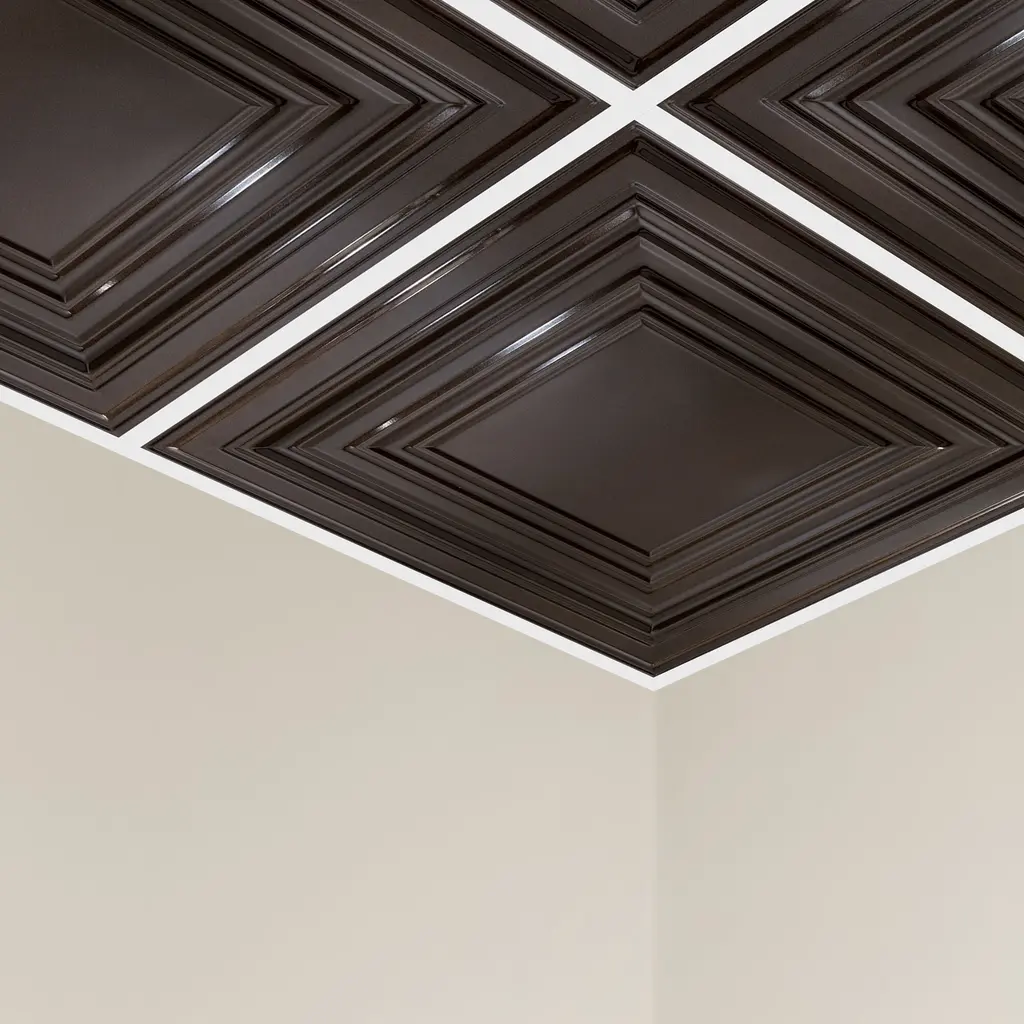 Great Lakes Tin Ceilings provide the classic look of yesteryear with authentic recreations that make a lasting impression in any space. The ceiling tiles are available in both nail-up and lay-in options in numerous styles and finishes. The nail-up tiles are easily applied with nails, screws, or glue. Finish options range from antique or gloss white to bronze burst and copper offerings. Two crown molding styles are also available and provide a finished look to your project. Panels can be cut with tin snips and allow homeowners to achieve a professional look at an affordable price. • Safer than standard tiles; Great Lakes Tin uses only premium-grade 29-gauge tin-plated steel, tested and awarded the Class A 1-Hour Fire Rating • Cut to fit any space; These tiles can be easily cut with tin snips, trimmed to any shape or size to fit your targeted area • Not just for ceilings; Great Lakes Tin tiles can be used to create an antiqued backsplash or rustic accent wall in your home; choose the finish that complements your decor and get to DIY-ing • Easy to install; Lightweight and durable, these tin tiles come in packs of five 2ft x 2ft panels, preventing the trouble and danger of dealing with bulky sheets of metal; simply drop in the tiles to create a beautiful new ceiling in no time; matching crown molding is also available • High quality materials; Tiles are made from genuine tin-plated steel, not plastic or foam board; achieve the rustic authenticity you envision with our one-of-a-kind tin ceiling panels; The Matte White tile has a soft, satin white finish with a matte topcoat