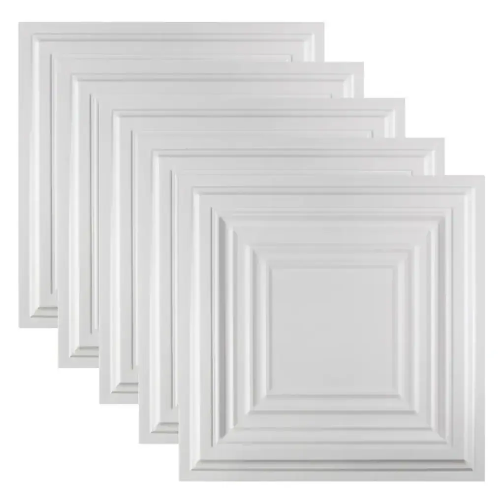 Great Lakes Tin Ceilings provide the classic look of yesteryear with authentic recreations that make a lasting impression in any space. The ceiling tiles are available in both nail-up and lay-in options in numerous styles and finishes. The nail-up tiles are easily applied with nails, screws, or glue. Finish options range from antique or gloss white to bronze burst and copper offerings. Two crown molding styles are also available and provide a finished look to your project. Panels can be cut with tin snips and allow homeowners to achieve a professional look at an affordable price. • Safer than standard tiles; Great Lakes Tin uses only premium-grade 29-gauge tin-plated steel, tested and awarded the Class A 1-Hour Fire Rating • Cut to fit any space; These tiles can be easily cut with tin snips, trimmed to any shape or size to fit your targeted area • Not just for ceilings; Great Lakes Tin tiles can be used to create an antiqued backsplash or rustic accent wall in your home; choose the finish that complements your decor and get to DIY-ing • Easy to install; Lightweight and durable, these tin tiles come in packs of five 2ft x 2ft panels, preventing the trouble and danger of dealing with bulky sheets of metal; simply drop in the tiles to create a beautiful new ceiling in no time; matching crown molding is also available • High quality materials; Tiles are made from genuine tin-plated steel, not plastic or foam board; achieve the rustic authenticity you envision with our one-of-a-kind tin ceiling panels; The Matte White tile has a soft, satin white finish with a matte topcoat