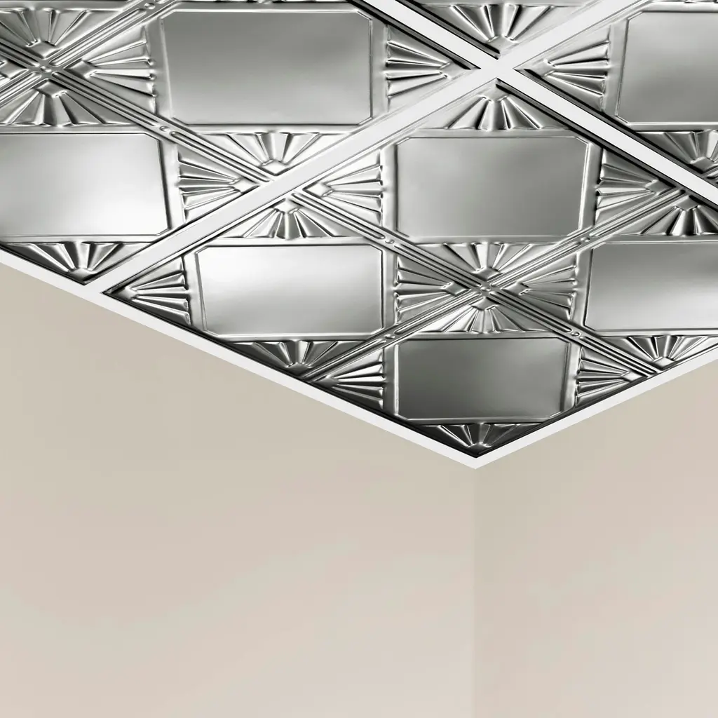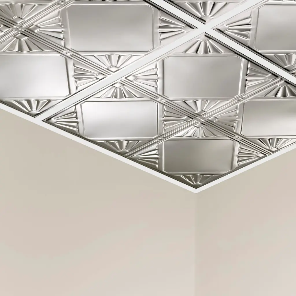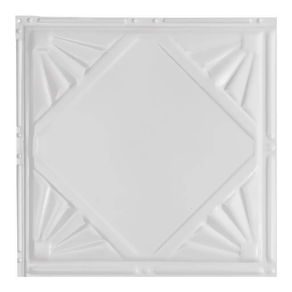 Great Lakes Tin Ceilings provide the classic look of yesteryear with authentic recreations that make a lasting impression in any space. The ceiling tiles are available in both nail-up and lay-in options in numerous styles and finishes. The nail-up tiles are easily applied with nails, screws, or glue. Finish options range from antique or gloss white to bronze burst and copper offerings. Two crown molding styles are also available and provide a finished look to your project. Panels can be cut with tin snips and allow homeowners to achieve a professional look at an affordable price. • Safer than standard tiles; Great Lakes Tin uses only premium-grade 29-gauge tin-plated steel, tested and awarded the Class A 1-Hour Fire Rating • Cut to fit any space; These tiles can be easily cut with tin snips, trimmed to any shape or size to fit your targeted area • Not just for ceilings; Great Lakes Tin tiles can be used to create an antiqued backsplash or rustic accent wall in your home; choose the finish that complements your decor and get to DIY-ing • Easy to install; Lightweight and durable, these tin tiles come in packs of five 2ft x 2ft panels, preventing the trouble and danger of dealing with bulky sheets of metal; simply drop in the tiles to create a beautiful new ceiling in no time; matching crown molding is also available • High quality materials; Tiles are made from genuine tin-plated steel, not plastic or foam board; achieve the rustic authenticity you envision with our one-of-a-kind tin ceiling panels; The Matte White tile has a soft, satin white finish with a matte topcoat