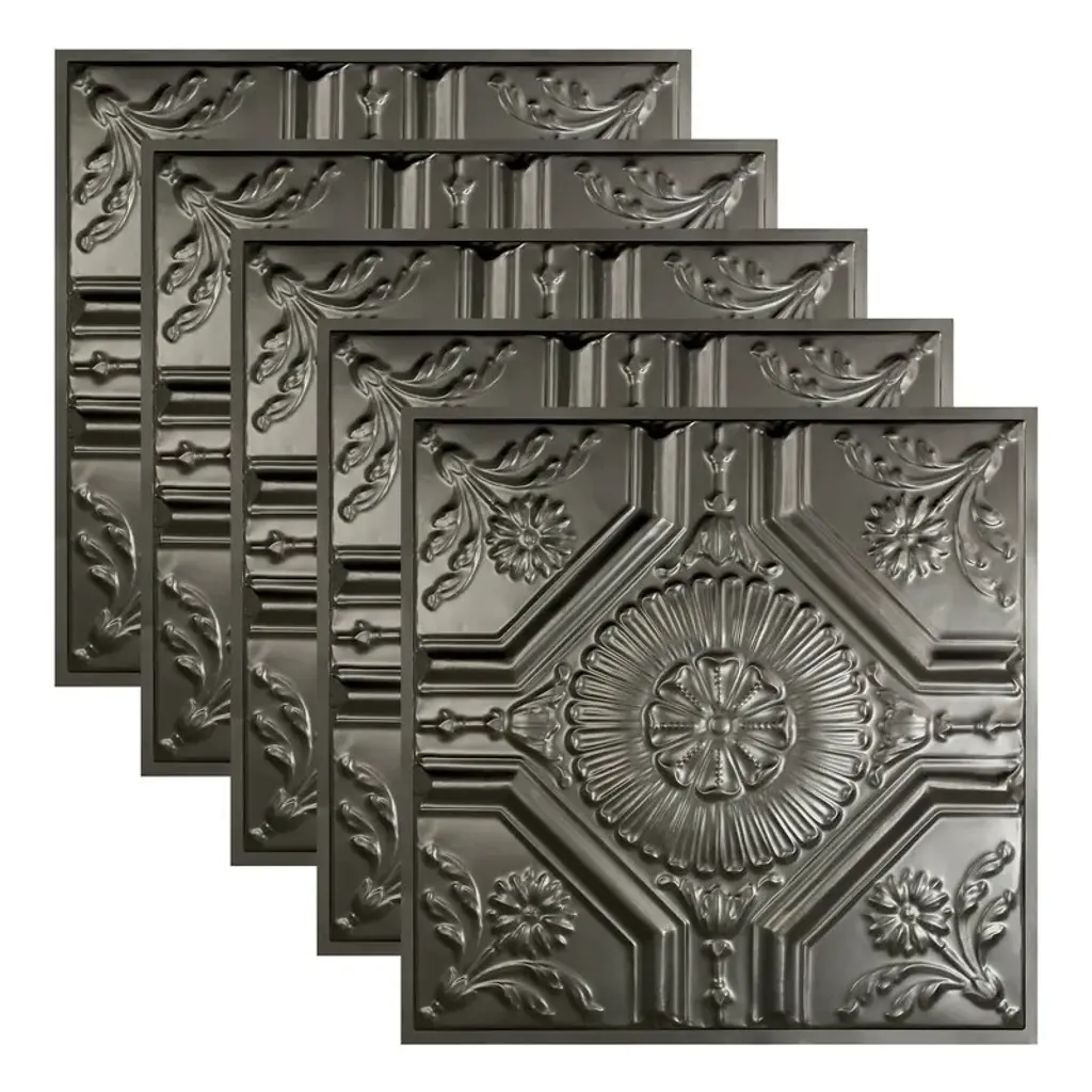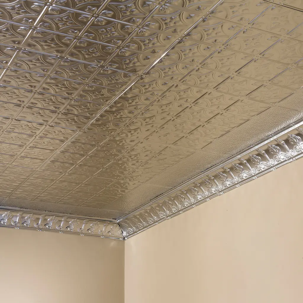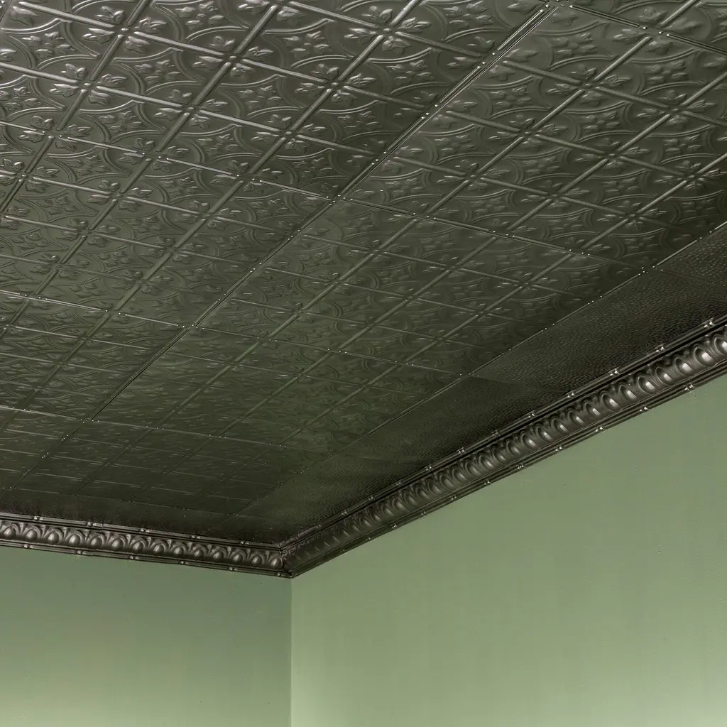 Great Lakes Tin Ceilings provide the classic look of yesteryear with authentic recreations that make a lasting impression in any space. The ceiling tiles are available in both nail-up and lay-in options in numerous styles and finishes. The nail-up tiles are easily applied with nails, screws, or glue. Finish options range from antique or gloss white to bronze burst and copper offerings. Two crown molding styles are also available and provide a finished look to your project. Panels can be cut with tin snips and allow homeowners to achieve a professional look at an affordable price. • Safer than standard tiles; Great Lakes Tin uses only premium-grade 29-gauge tin-plated steel, tested and awarded the Class A 1-Hour Fire Rating • Cut to fit any space; These tiles can be easily cut with tin snips, trimmed to any shape or size to fit your targeted area • Not just for ceilings; Great Lakes Tin tiles can be used to create an antiqued backsplash or rustic accent wall in your home; choose the finish that complements your decor and get to DIY-ing • Easy to install; Lightweight and durable, these tin tiles come in packs of five 2ft x 2ft panels, preventing the trouble and danger of dealing with bulky sheets of metal; simply drop in the tiles to create a beautiful new ceiling in no time; matching crown molding is also available • High quality materials; Tiles are made from genuine tin-plated steel, not plastic or foam board; achieve the rustic authenticity you envision with our one-of-a-kind tin ceiling panels; The Matte White tile has a soft, satin white finish with a matte topcoat