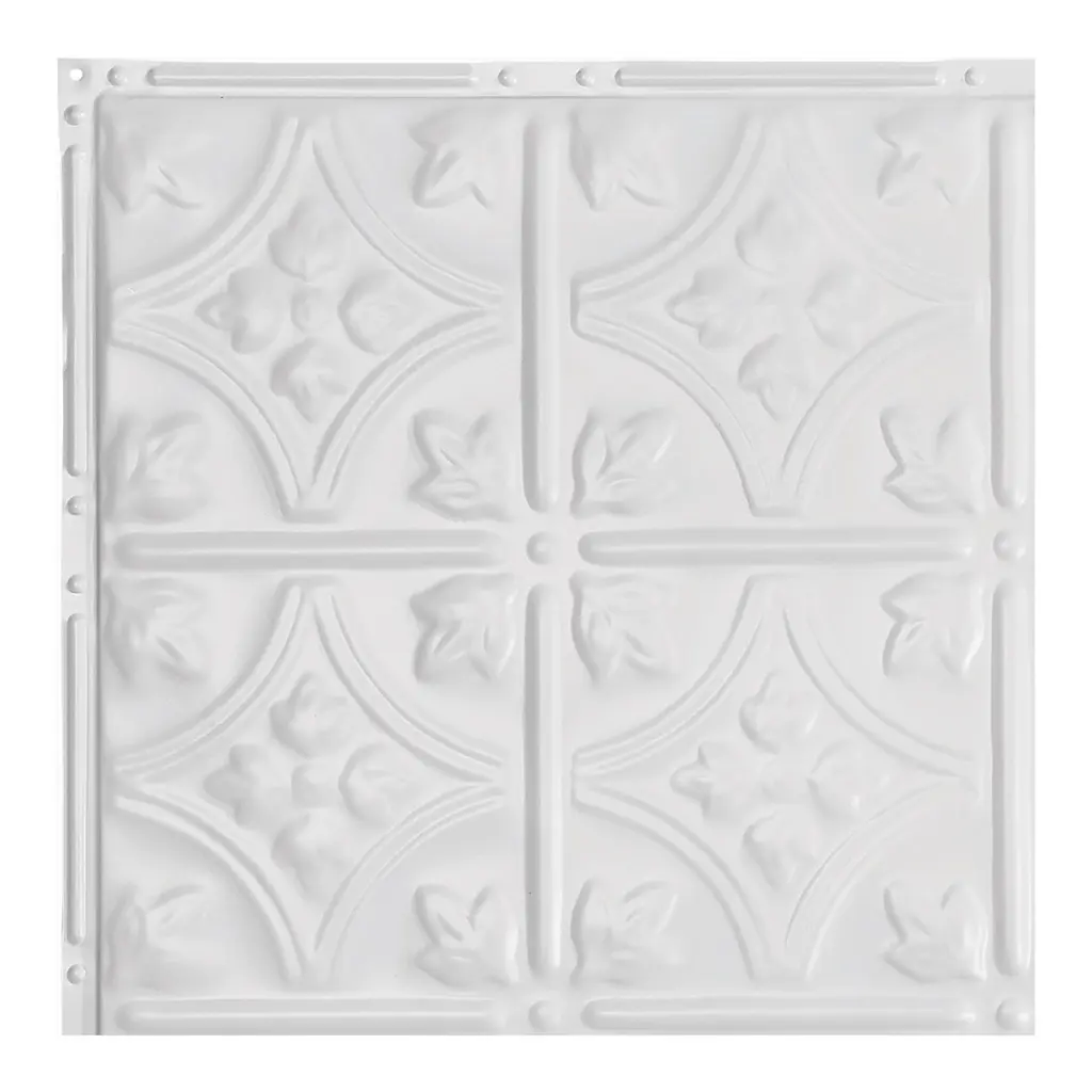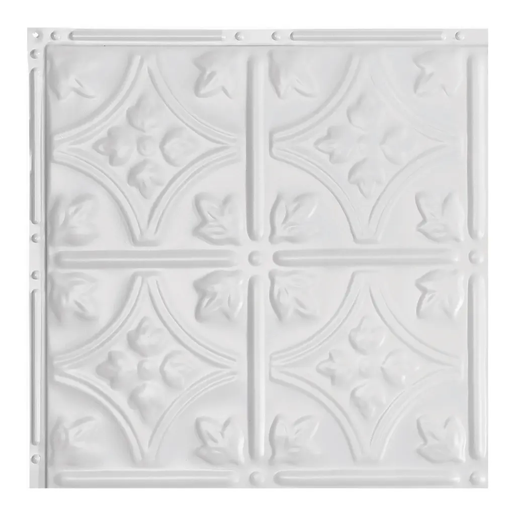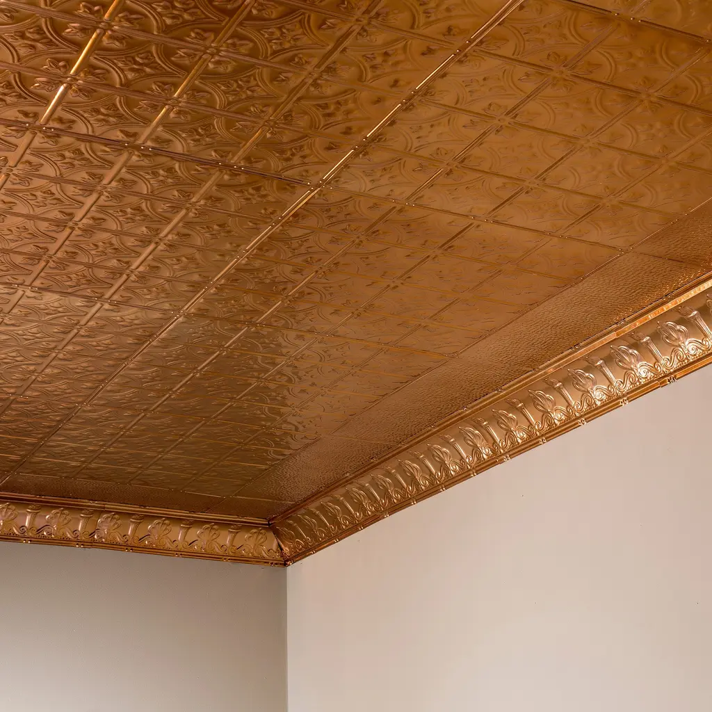 Great Lakes Tin Ceilings provide the classic look of yesteryear with authentic recreations that make a lasting impression in any space. The ceiling tiles are available in both nail-up and lay-in options in numerous styles and finishes. The nail-up tiles are easily applied with nails, screws, or glue. Finish options range from antique or gloss white to bronze burst and copper offerings. Two crown molding styles are also available and provide a finished look to your project. Panels can be cut with tin snips and allow homeowners to achieve a professional look at an affordable price. • Safer than standard tiles; Great Lakes Tin uses only premium-grade 29-gauge tin-plated steel, tested and awarded the Class A 1-Hour Fire Rating • Cut to fit any space; These tiles can be easily cut with tin snips, trimmed to any shape or size to fit your targeted area • Not just for ceilings; Great Lakes Tin tiles can be used to create an antiqued backsplash or rustic accent wall in your home; choose the finish that complements your decor and get to DIY-ing • Easy to install; Lightweight and durable, these tin tiles come in packs of five 2ft x 2ft panels, preventing the trouble and danger of dealing with bulky sheets of metal; simply drop in the tiles to create a beautiful new ceiling in no time; matching crown molding is also available • High quality materials; Tiles are made from genuine tin-plated steel, not plastic or foam board; achieve the rustic authenticity you envision with our one-of-a-kind tin ceiling panels; The Matte White tile has a soft, satin white finish with a matte topcoat