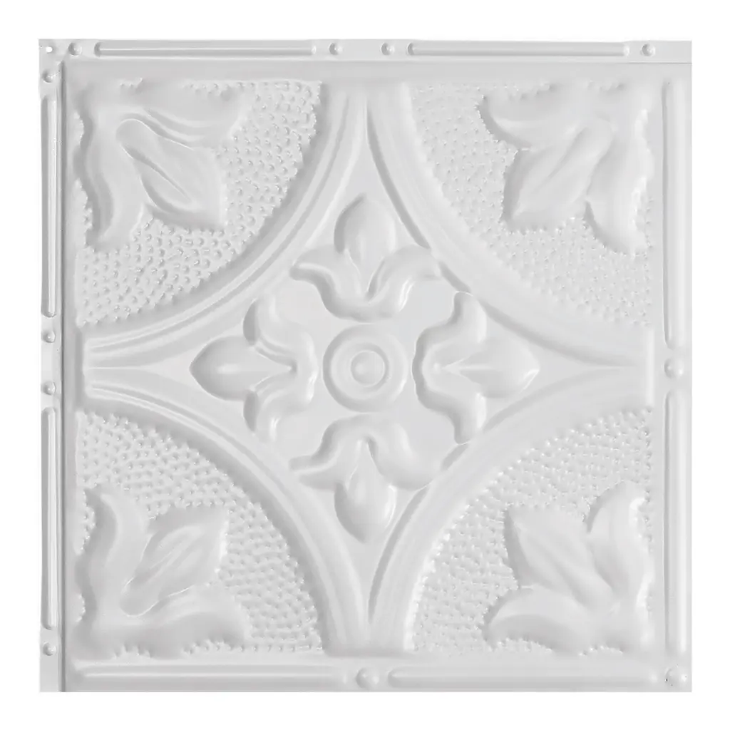 Great Lakes Tin Ceilings provide the classic look of yesteryear with authentic recreations that make a lasting impression in any space. The ceiling tiles are available in both nail-up and lay-in options in numerous styles and finishes. The nail-up tiles are easily applied with nails, screws, or glue. Finish options range from antique or gloss white to bronze burst and copper offerings. Two crown molding styles are also available and provide a finished look to your project. Panels can be cut with tin snips and allow homeowners to achieve a professional look at an affordable price. • Safer than standard tiles; Great Lakes Tin uses only premium-grade 29-gauge tin-plated steel, tested and awarded the Class A 1-Hour Fire Rating • Cut to fit any space; These tiles can be easily cut with tin snips, trimmed to any shape or size to fit your targeted area • Not just for ceilings; Great Lakes Tin tiles can be used to create an antiqued backsplash or rustic accent wall in your home; choose the finish that complements your decor and get to DIY-ing • Easy to install; Lightweight and durable, these tin tiles come in packs of five 2ft x 2ft panels, preventing the trouble and danger of dealing with bulky sheets of metal; simply drop in the tiles to create a beautiful new ceiling in no time; matching crown molding is also available • High quality materials; Tiles are made from genuine tin-plated steel, not plastic or foam board; achieve the rustic authenticity you envision with our one-of-a-kind tin ceiling panels; The Matte White tile has a soft, satin white finish with a matte topcoat
