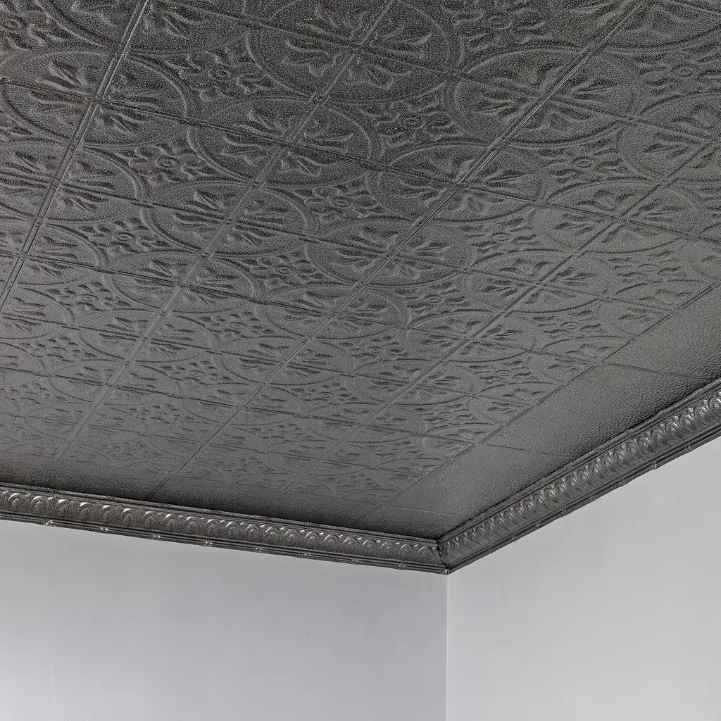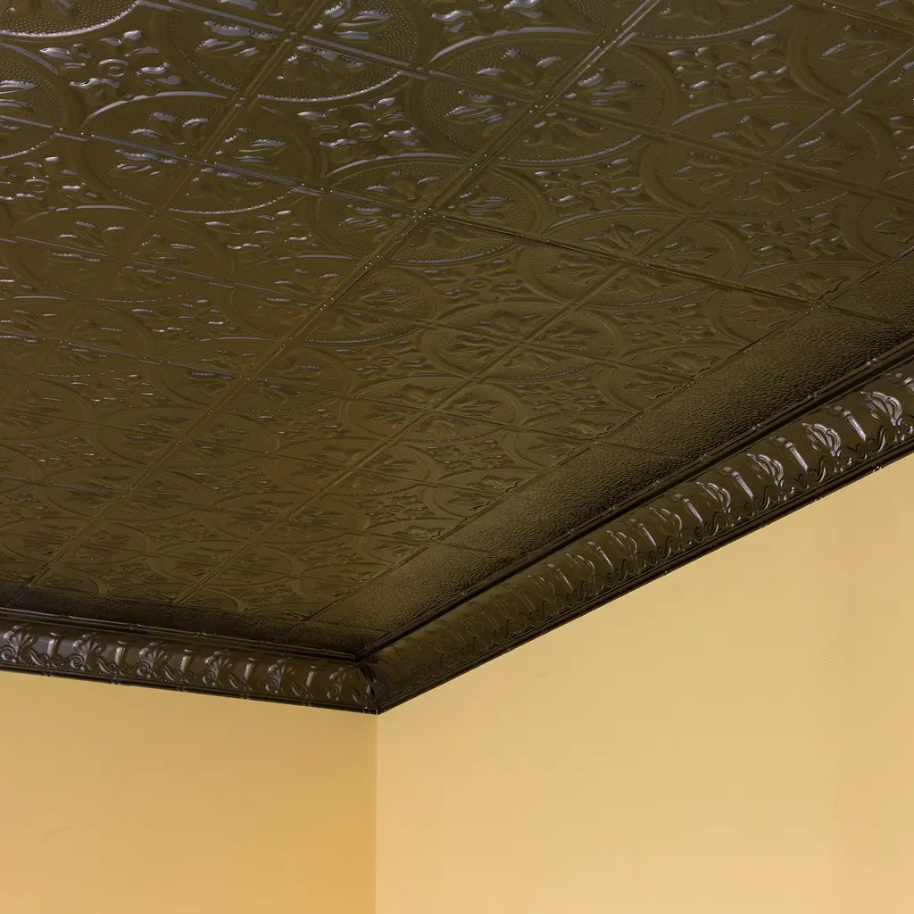 Great Lakes Tin Ceilings provide the classic look of yesteryear with authentic recreations that make a lasting impression in any space. The ceiling tiles are available in both nail-up and lay-in options in numerous styles and finishes. The nail-up tiles are easily applied with nails, screws, or glue. Finish options range from antique or gloss white to bronze burst and copper offerings. Two crown molding styles are also available and provide a finished look to your project. Panels can be cut with tin snips and allow homeowners to achieve a professional look at an affordable price. • Safer than standard tiles; Great Lakes Tin uses only premium-grade 29-gauge tin-plated steel, tested and awarded the Class A 1-Hour Fire Rating • Cut to fit any space; These tiles can be easily cut with tin snips, trimmed to any shape or size to fit your targeted area • Not just for ceilings; Great Lakes Tin tiles can be used to create an antiqued backsplash or rustic accent wall in your home; choose the finish that complements your decor and get to DIY-ing • Easy to install; Lightweight and durable, these tin tiles come in packs of five 2ft x 2ft panels, preventing the trouble and danger of dealing with bulky sheets of metal; simply drop in the tiles to create a beautiful new ceiling in no time; matching crown molding is also available • High quality materials; Tiles are made from genuine tin-plated steel, not plastic or foam board; achieve the rustic authenticity you envision with our one-of-a-kind tin ceiling panels; The Matte White tile has a soft, satin white finish with a matte topcoat