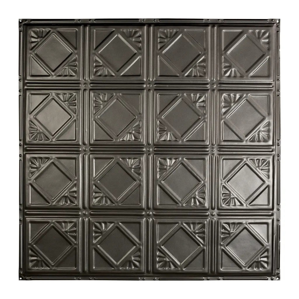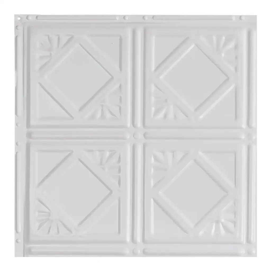 Great Lakes Tin Ceilings provide the classic look of yesteryear with authentic recreations that make a lasting impression in any space. The ceiling tiles are available in both nail-up and lay-in options in numerous styles and finishes. The nail-up tiles are easily applied with nails, screws, or glue. Finish options range from antique or gloss white to bronze burst and copper offerings. Two crown molding styles are also available and provide a finished look to your project. Panels can be cut with tin snips and allow homeowners to achieve a professional look at an affordable price. • Safer than standard tiles; Great Lakes Tin uses only premium-grade 29-gauge tin-plated steel, tested and awarded the Class A 1-Hour Fire Rating • Cut to fit any space; These tiles can be easily cut with tin snips, trimmed to any shape or size to fit your targeted area • Not just for ceilings; Great Lakes Tin tiles can be used to create an antiqued backsplash or rustic accent wall in your home; choose the finish that complements your decor and get to DIY-ing • Easy to install; Lightweight and durable, these tin tiles come in packs of five 2ft x 2ft panels, preventing the trouble and danger of dealing with bulky sheets of metal; simply drop in the tiles to create a beautiful new ceiling in no time; matching crown molding is also available • High quality materials; Tiles are made from genuine tin-plated steel, not plastic or foam board; achieve the rustic authenticity you envision with our one-of-a-kind tin ceiling panels; The Matte White tile has a soft, satin white finish with a matte topcoat