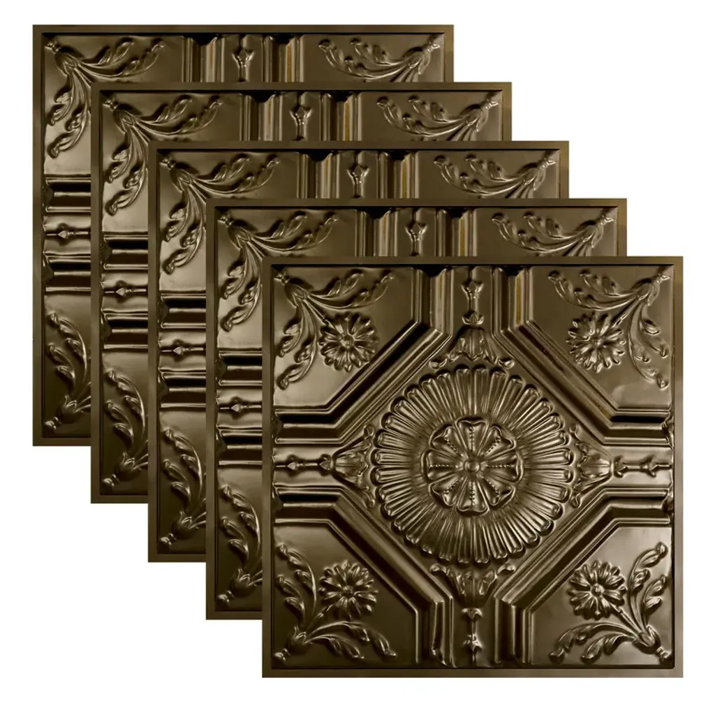 Great Lakes Tin Ceilings provide the classic look of yesteryear with authentic recreations that make a lasting impression in any space. The ceiling tiles are available in both nail-up and lay-in options in numerous styles and finishes. The nail-up tiles are easily applied with nails, screws, or glue. Finish options range from antique or gloss white to bronze burst and copper offerings. Two crown molding styles are also available and provide a finished look to your project. Panels can be cut with tin snips and allow homeowners to achieve a professional look at an affordable price. • Safer than standard tiles; Great Lakes Tin uses only premium-grade 29-gauge tin-plated steel, tested and awarded the Class A 1-Hour Fire Rating • Cut to fit any space; These tiles can be easily cut with tin snips, trimmed to any shape or size to fit your targeted area • Not just for ceilings; Great Lakes Tin tiles can be used to create an antiqued backsplash or rustic accent wall in your home; choose the finish that complements your decor and get to DIY-ing • Easy to install; Lightweight and durable, these tin tiles come in packs of five 2ft x 2ft panels, preventing the trouble and danger of dealing with bulky sheets of metal; simply drop in the tiles to create a beautiful new ceiling in no time; matching crown molding is also available • High quality materials; Tiles are made from genuine tin-plated steel, not plastic or foam board; achieve the rustic authenticity you envision with our one-of-a-kind tin ceiling panels; The Matte White tile has a soft, satin white finish with a matte topcoat