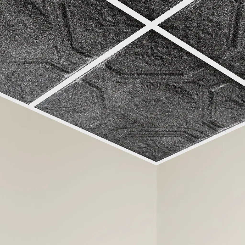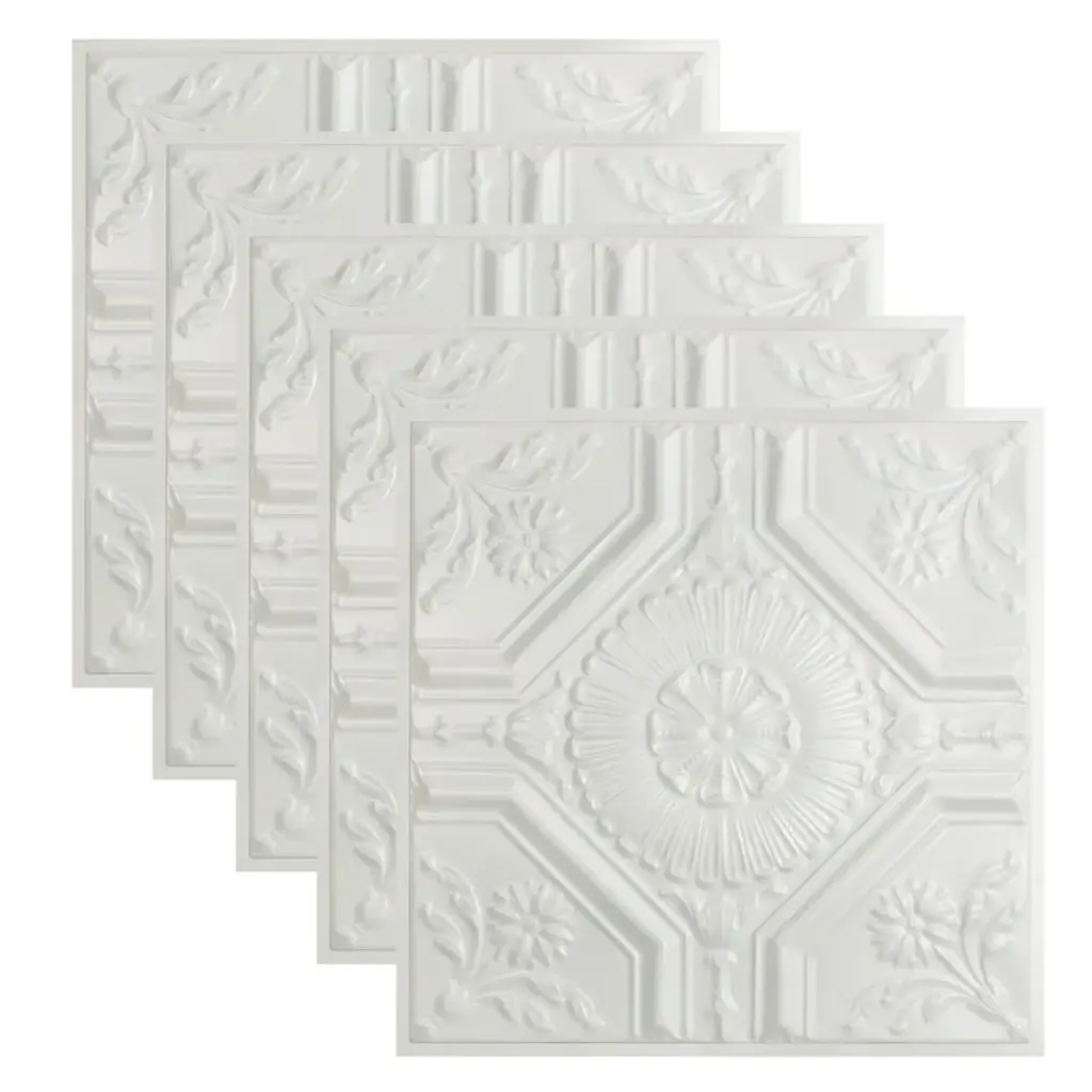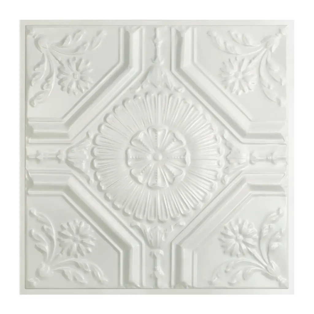 Great Lakes Tin Ceilings provide the classic look of yesteryear with authentic recreations that make a lasting impression in any space. The ceiling tiles are available in both nail-up and lay-in options in numerous styles and finishes. The nail-up tiles are easily applied with nails, screws, or glue. Finish options range from antique or gloss white to bronze burst and copper offerings. Two crown molding styles are also available and provide a finished look to your project. Panels can be cut with tin snips and allow homeowners to achieve a professional look at an affordable price. • Safer than standard tiles; Great Lakes Tin uses only premium-grade 29-gauge tin-plated steel, tested and awarded the Class A 1-Hour Fire Rating • Cut to fit any space; These tiles can be easily cut with tin snips, trimmed to any shape or size to fit your targeted area • Not just for ceilings; Great Lakes Tin tiles can be used to create an antiqued backsplash or rustic accent wall in your home; choose the finish that complements your decor and get to DIY-ing • Easy to install; Lightweight and durable, these tin tiles come in packs of five 2ft x 2ft panels, preventing the trouble and danger of dealing with bulky sheets of metal; simply drop in the tiles to create a beautiful new ceiling in no time; matching crown molding is also available • High quality materials; Tiles are made from genuine tin-plated steel, not plastic or foam board; achieve the rustic authenticity you envision with our one-of-a-kind tin ceiling panels; The Matte White tile has a soft, satin white finish with a matte topcoat