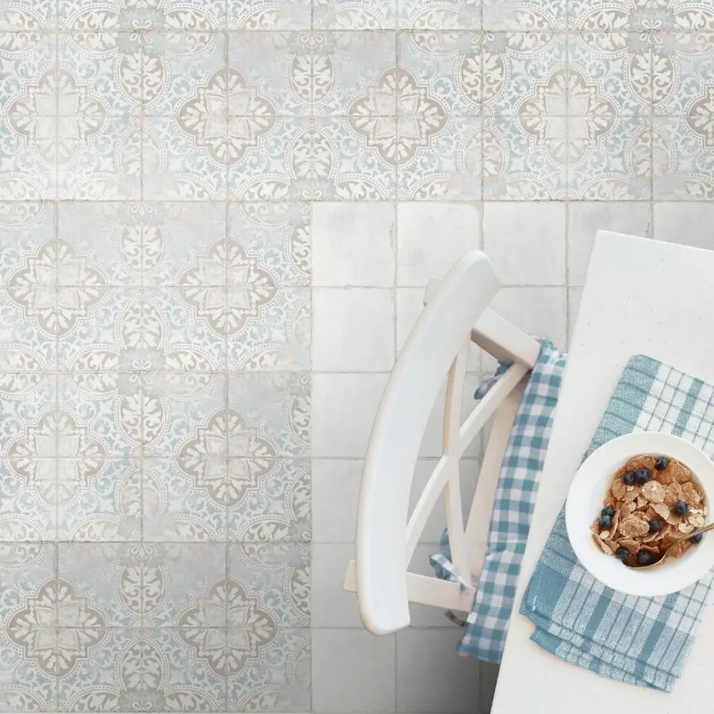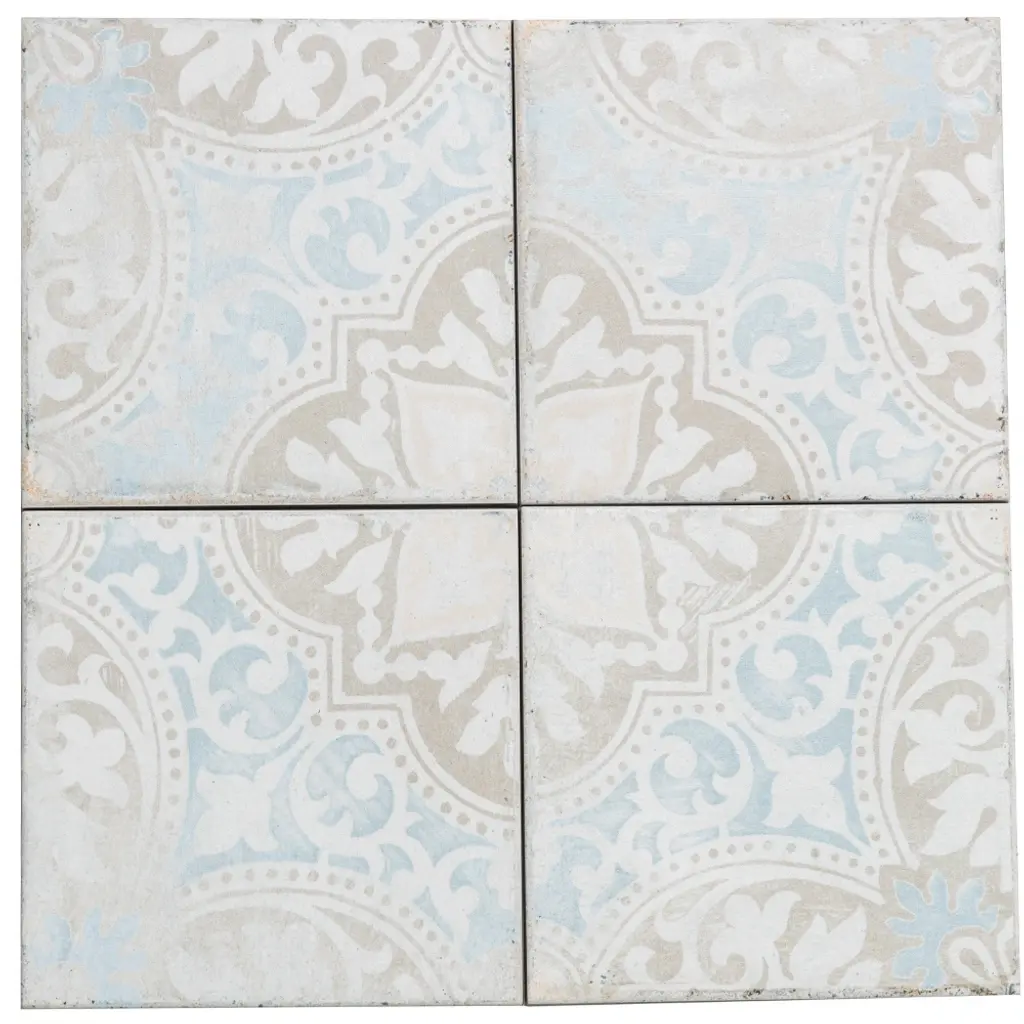 The Tile Life Greenwich 6-inch x 6-inch porcelain uses digital inkjet and digital gloss technology to highlight its hydraulic cement tile pattern and colors. The tile is made with an antique finish to imply years of wear and its pattern is thoughtfully designed to match all the colors of Waverly within a single design. The 6-inch x 6-inch size is ideal to create a pattern combining 4 pcs to form a 12-inch x 12-inch area and also to fit more tastefully into a common 18-inch backsplash than larger format porcelain pattern tiles. FEATURES: Montjuic mix color Waterproof and submersible V2 Slight variation PEI 4 Spanish/ Moroccan patterned porcelain tile Heat resistant, fire resistant, slip resistant Residential and commercial use Ideal for backsplash, bathroom, shower, kitchen, floor, wall DIMENSIONS: Individual tile: 6-inch x 6-inch Overall product weight: 38 lbs. Surface area per carton: 10.22 square feet