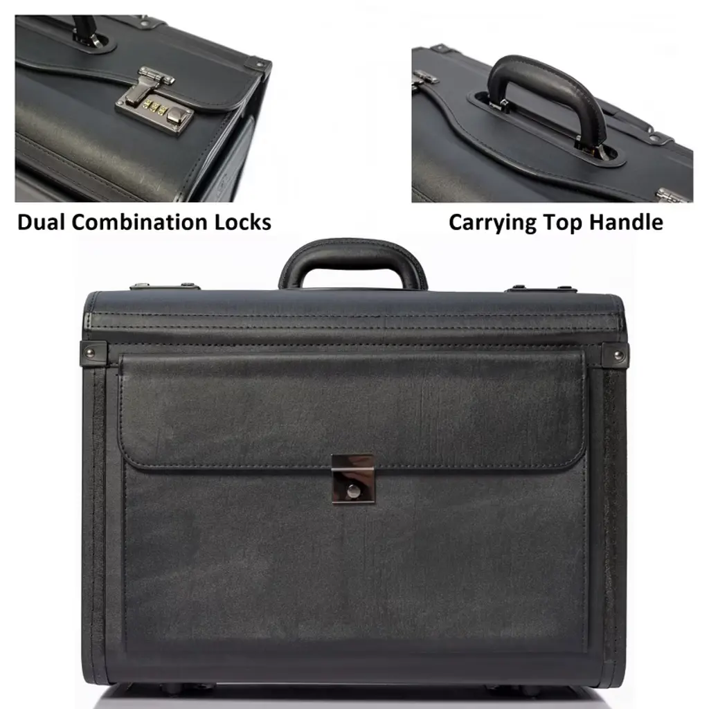 Hammer Anvil 19 Wheeled Briefcase Rolling Case Sales Sample Pilot Lawyer Attache Black Leatherette