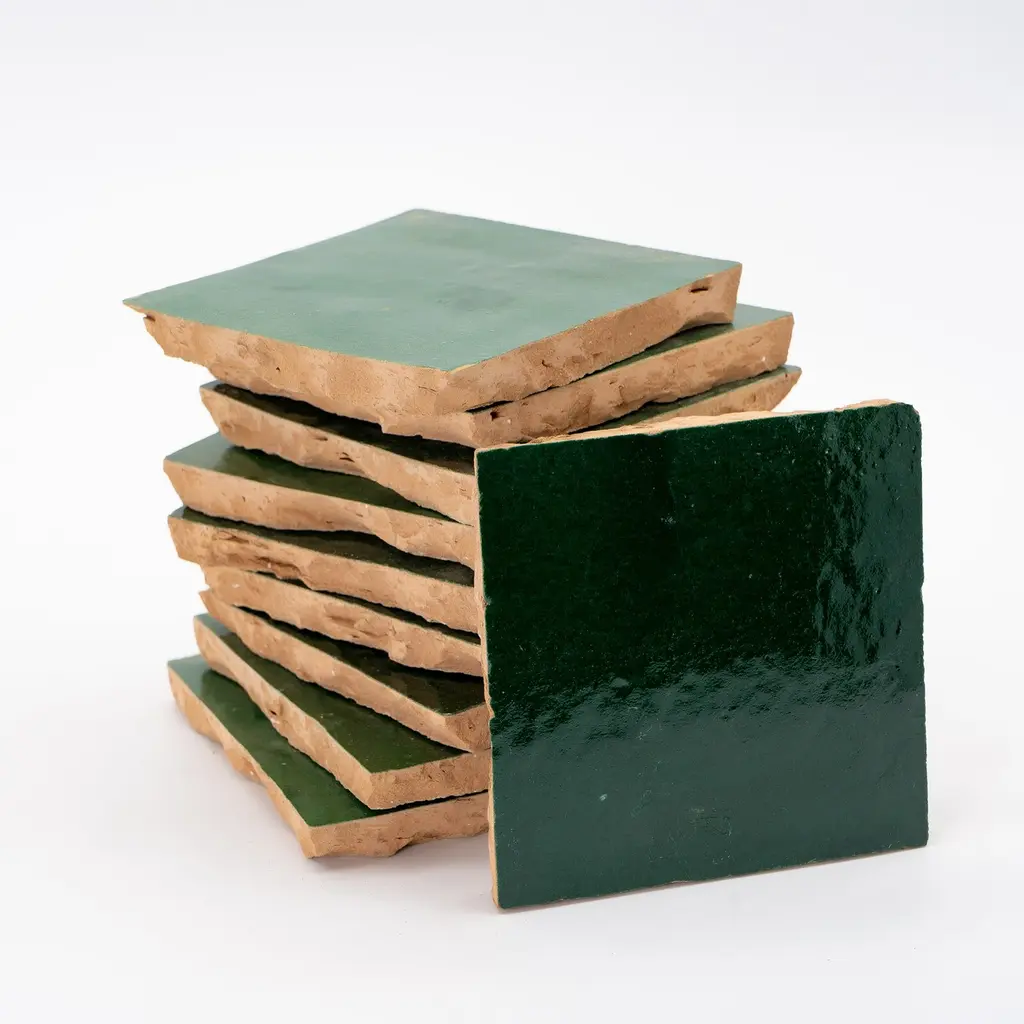 Elevate your space with the timeless beauty of traditional Moroccan Zelig tiles! Our Handmade 4x4-in Moroccan Mosaic Solid Color tiles are meticulously crafted by skilled Moroccan artisans using high-quality clay. These glossy tiles are perfect for both indoor and outdoor use and are environmentally responsible and resource efficient. With low maintenance and durability, these tiles are sure to add a touch of elegance to any floor or wall.Brand: Moroccan Mosaic and Tile House Type/style: Floor and Wall Tile Materials: Made of clay Dimensions: 4 x 4 inch tiles Coverage: 5.33 Sq. ft Installation: Professional installation is recommended Pack/case of: 48 mosaic 4x4in tiles Handmade, durable, Indoors/ Outdoor, high quality materials, environmentally responsible and resource efficient, low maintenance . Story Behind the Art: "It's more than tile, it's art." That simple statement is what sets the craftsmanship of Moroccan Mosaic apart from the rest. Based in the small city of Sale, Moroccan Mosaic is a family business going back 4 generations. When Simo, the current head of the business graduated from university in New York, he had little interest in the family business. But on a return trip home, he saw that the business was not doing well and set about reviving it. One important change he made was introducing black, grey, and white designs to appeal to American and European customers. It worked. When he started, they employed 2 workers and now they have nearly 80 on staff. The workshop itself is fairly simple, and the techniques used to create the tiles are steeped in tradition. Some modern equipment is available, though the workers prefer to use the more rustic tools. The creative process is time intensive and done by hand, as Simo insists on no corners be cut or production be rushed. Environmentally responsible and resource efficient, no chemicals are used at any step. For example, colors used come from nature literally. Green comes from mint leaves, orange from orange peel, and black from charcoal. The tiles themselves are a simple mixture of cement, sand, and granite powder. Moroccan Mosaic hires only local workers, teaching them a valued skill as well as paying them fair wages. Simo's goals for his business are to share the tradition of gorgeous Moroccan tile, grow the business, and employ more and more workers. Disclaimers & Disclosures: Please be aware that if you order more than 151 pounds of tile or flooring, the order may need to be shipped Freight and our Oversized Item Delivery/Return policy will apply. Please click here for more information.
