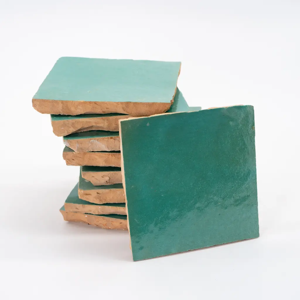 Elevate your space with the timeless beauty of traditional Moroccan Zelig tiles! Our Handmade 4x4-in Moroccan Mosaic Solid Color tiles are meticulously crafted by skilled Moroccan artisans using high-quality clay. These glossy tiles are perfect for both indoor and outdoor use and are environmentally responsible and resource efficient. With low maintenance and durability, these tiles are sure to add a touch of elegance to any floor or wall.Features: Handmade, durable, Indoors/ Outdoor, high quality materials, environmentally responsible and resource efficient, low maintenance. Story Behind the Art: "It's more than tile, it's art." That simple statement is what sets the craftsmanship of Moroccan Mosaic apart from the rest. Based in the small city of Sale, Moroccan Mosaic is a family business going back 4 generations. When Simo, the current head of the business graduated from university in New York, he had little interest in the family business. But on a return trip home, he saw that the business was not doing well and set about reviving it. One important change he made was introducing black, grey, and white designs to appeal to American and European customers. It worked. When he started, they employed 2 workers and now they have nearly 80 on staff. The workshop itself is fairly simple, and the techniques used to create the tiles are steeped in tradition. Some modern equipment is available, though the workers prefer to use the more rustic tools. The creative process is time intensive and done by hand, as Simo insists on no corners be cut or production be rushed. Environmentally responsible and resource efficient, no chemicals are used at any step. For example, colors used come from nature literally. Green comes from mint leaves, orange from orange peel, and black from charcoal. The tiles themselves are a simple mixture of cement, sand, and granite powder. Moroccan Mosaic hires only local workers, teaching them a valued skill as well as paying them fair wages. Simo's goals for his business are to share the tradition of gorgeous Moroccan tile, grow the business, and employ more and more workers.