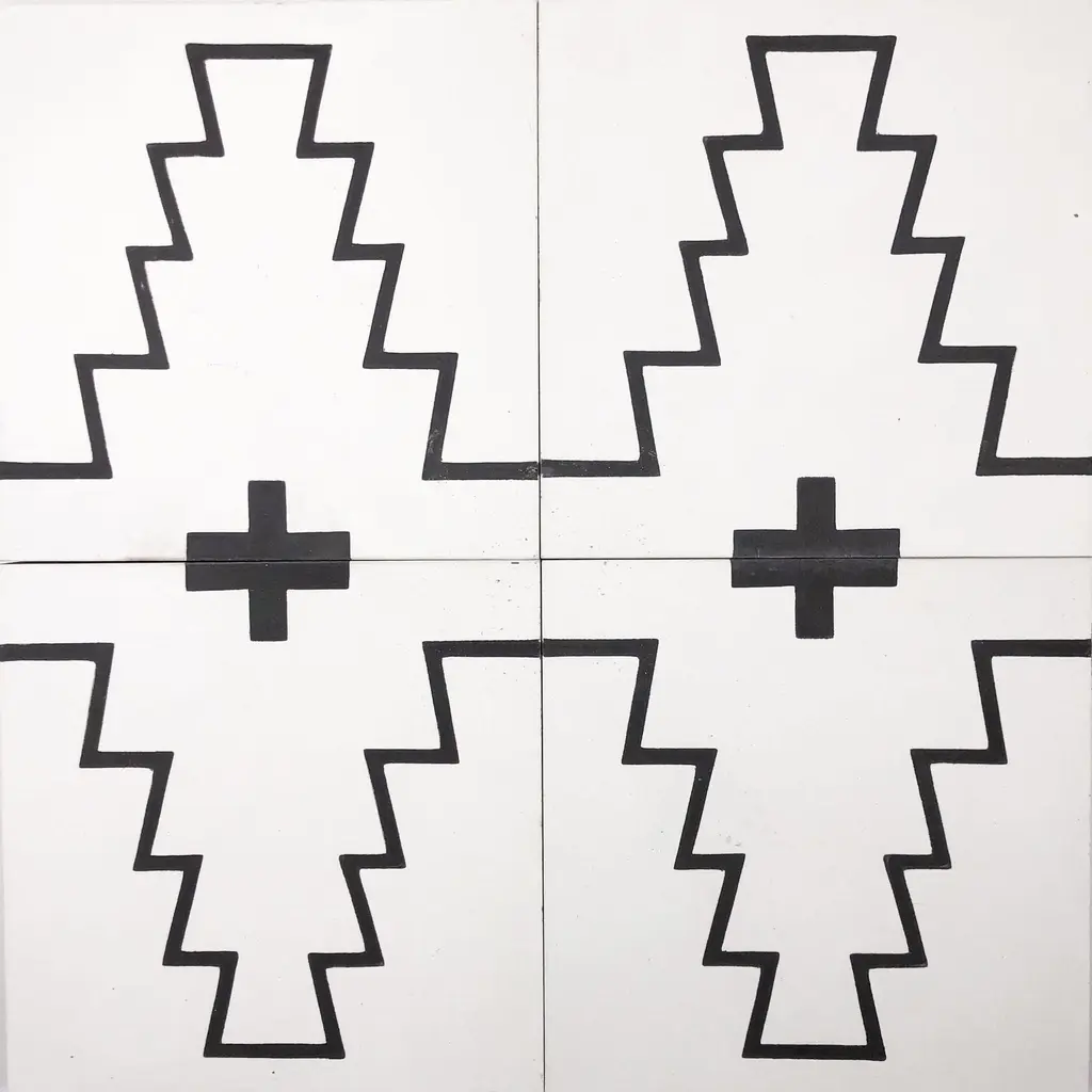 Handmade 8X8 Midar In White And Black Cement Tile (Morocco) - Sample-1 Tile