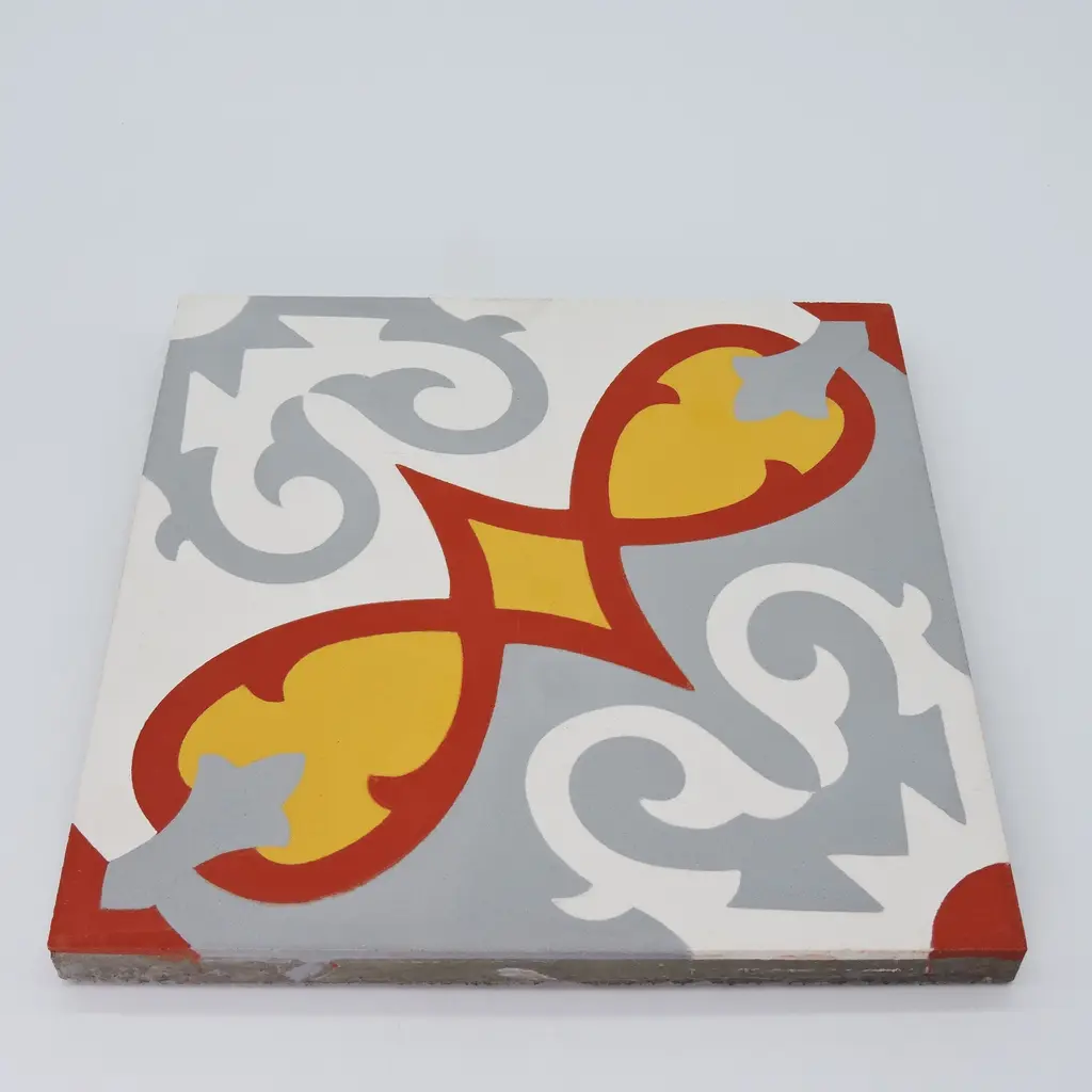Agadir is an authentic versatile cement tile based on a floral pattern. Its design will bring life to any part of the home. Its colors create a classy and modern appearance. Agadir is the perfect tile to show off your fun and classy side. Handmade using traditional Moroccan methods, these tiles provide a classic accent to floors and walls, and the cement and granite materials offer environmentally friendly durability for indoor and outdoor use. Features:Pack of 12 tiles when ordering a box (8x8), Sample is 1 tile only, maximum of 4 samplesThe handcrafted touch of artisan skill will create variations in color, size, and design. Color differences may occur between the actual product and your computer screen. If buying two of the same item, slight differences will occur from piece to piece. Story Behind the Art: "It's more than tile, it's art." That simple statement is what sets the craftsmanship of Moroccan Mosaic apart from the rest. Based in the small city of Sale, Moroccan Mosaic is a family business going back 4 generations. When Simo, the current head of the business graduated from university in New York, he had little interest in the family business. But on a return trip home, he saw that the business was not doing well and set about reviving it. One important change he made was introducing black, grey, and white designs to appeal to American and European customers. It worked. When he started, they employed 2 workers and now they have nearly 80 on staff. The workshop itself is fairly simple, and the techniques used to create the tiles are steeped in tradition. Some modern equipment is available, though the workers prefer to use the more rustic tools. The creative process is time intensive and done by hand, as Simo insists on no corners be cut or production be rushed. Environmentally responsible and resource efficient, no chemicals are used at any step. For example, colors used come from nature literally. Green comes from mint leaves, orange from orange peel, and black from charcoal. The tiles themselves are a simple mixture of cement, sand, and granite powder. Moroccan Mosaic hires only local workers, teaching them a valued skill as well as paying them fair wages. Simo's goals for his business are to share the tradition of gorgeous Moroccan tile, grow the business, and employ more and more workers.