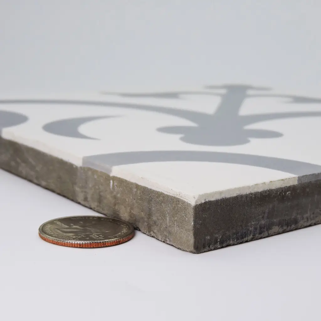Introduce a touch of Moroccan culture and modern elegance to your home with our pack of 12 Nador tiles in white and grey. These handcrafted cement tiles are made by master craftsman Lahoucin, who comes from a family of skilled Moroccan tile makers. Each tile features a captivating design that will create a harmonious ambiance in any room. Features:"It's more than tile, it's art." That simple statement is what sets the craftsmanship of Moroccan Mosaic apart from the rest. Based in the small city of Sale, Moroccan Mosaic is a family business going back 4 generations. When Simo, the current head of the business graduated from university in New York, he had little interest in the family business. But on a return trip home, he saw that the business was not doing well and set about reviving it. One important change he made was introducing black, grey, and white designs to appeal to American and European customers. It worked. When he started, they employed 2 workers and now they have nearly 80 on staff. The workshop itself is fairly simple, and the techniques used to create the tiles are steeped in tradition. Some modern equipment is available, though the workers prefer to use the more rustic tools. The creative process is time intensive and done by hand, as Simo insists on no corners be cut or production be rushed. Environmentally responsible and resource efficient, no chemicals are used at any step. For example, colors used come from nature literally. Green comes from mint leaves, orange from orange peel, and black from charcoal. The tiles themselves are a simple mixture of cement, sand, and granite powder. Moroccan Mosaic hires only local workers, teaching them a valued skill as well as paying them fair wages. Simo's goals for his business are to share the tradition of gorgeous Moroccan tile, grow the business, and employ more and more workers.
