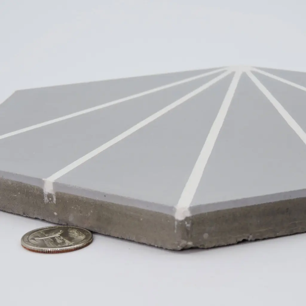 Design a dazzling backsplash, floor, or wall with these stunning tiles. Handmade by skilled Moroccan artisans for superior craftsmanship and traditional authenticity. These decorative tiles made from cement are durable indoors and outdoors. Weather-resistant and waterproof, the eco-friendly Moroccan tiles support your commitment to a greener home.· Features:· Handmade in Morocco· Moroccan Mosaic and Tile House Brand· Decorative floor and wall tiles· Made of cement materials· Professional installation is recommended.· Tiles need to be sealed before and after grouting.· Eco-friendly· Indoor or outdoor use· Geometric pattern· When ordering a box, 12 tiles come included. Sample is just 1 tile.· 12 tiles per box, covering 5.22 square feet.· 2.3 tiles per square foot· Each tile measures 8 inches wide x 8 inches long· Story Behind the Art: "It's more than tile, it's art." That simple statement is what sets the craftsmanship of Moroccan Mosaic apart from the rest. Based in the small city of Sale, Moroccan Mosaic is a family business going back 4 generations. When Simo, the current head of the business graduated from university in New York, he had little interest in the family business. But on a return trip home, he saw that the business was not doing well and set about reviving it. One important change he made was introducing black, grey, and white designs to appeal to American and European customers. It worked. When he started, they employed 2 workers and now they have nearly 80 on staff. The workshop itself is fairly simple, and the techniques used to create the tiles are steeped in tradition. Some modern equipment is available, though the workers prefer to use the more rustic tools. The creative process is time intensive and done by hand, as Simo insists on no corners be cut or production be rushed. Environmentally responsible and resource efficient, no chemicals are used at any step. For example, colors used come from nature literally. Green comes from mint leaves, orange from orange peel, and black from charcoal. The tiles themselves are a simple mixture of cement, sand, and granite powder. Moroccan Mosaic hires only local workers, teaching them a valued skill as well as paying them fair wages. Simo's goals for his business are to share the tradition of gorgeous Moroccan tile, grow the business, and employ more and more workers.