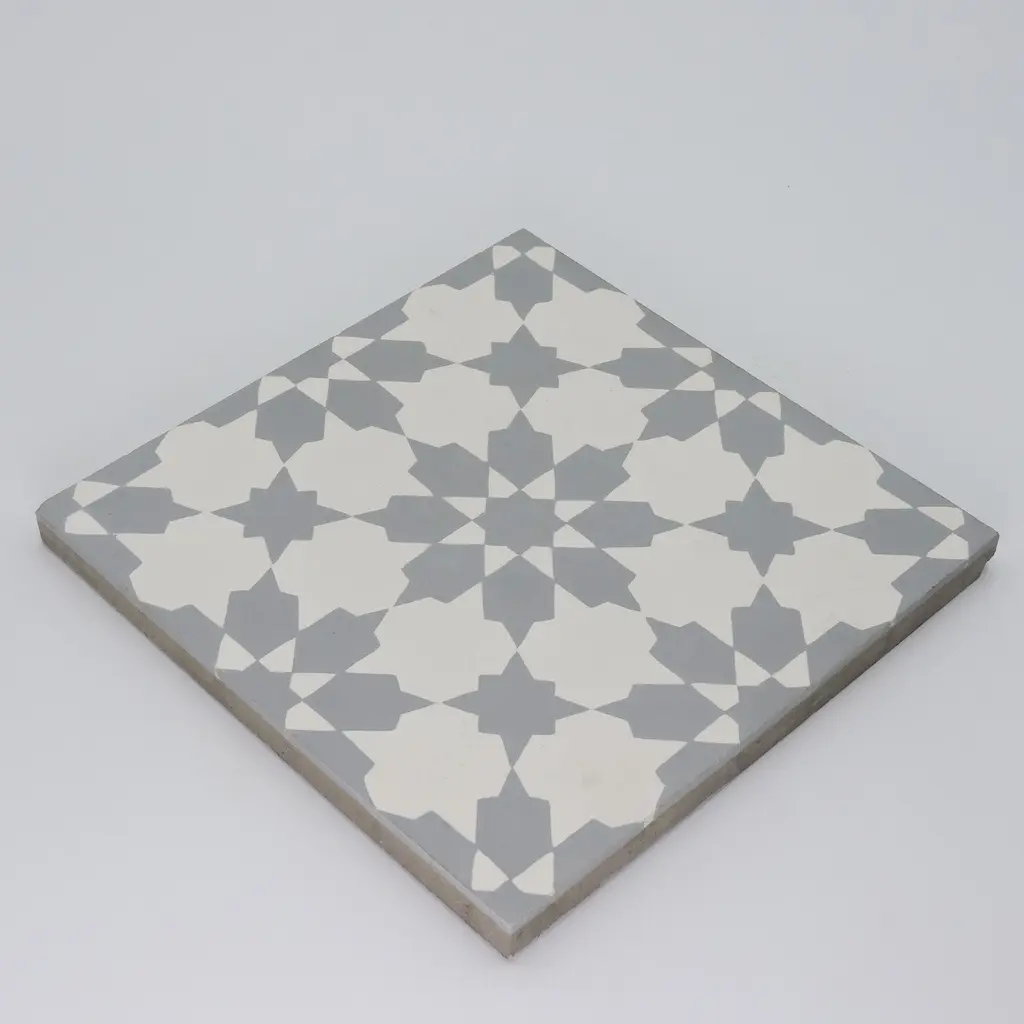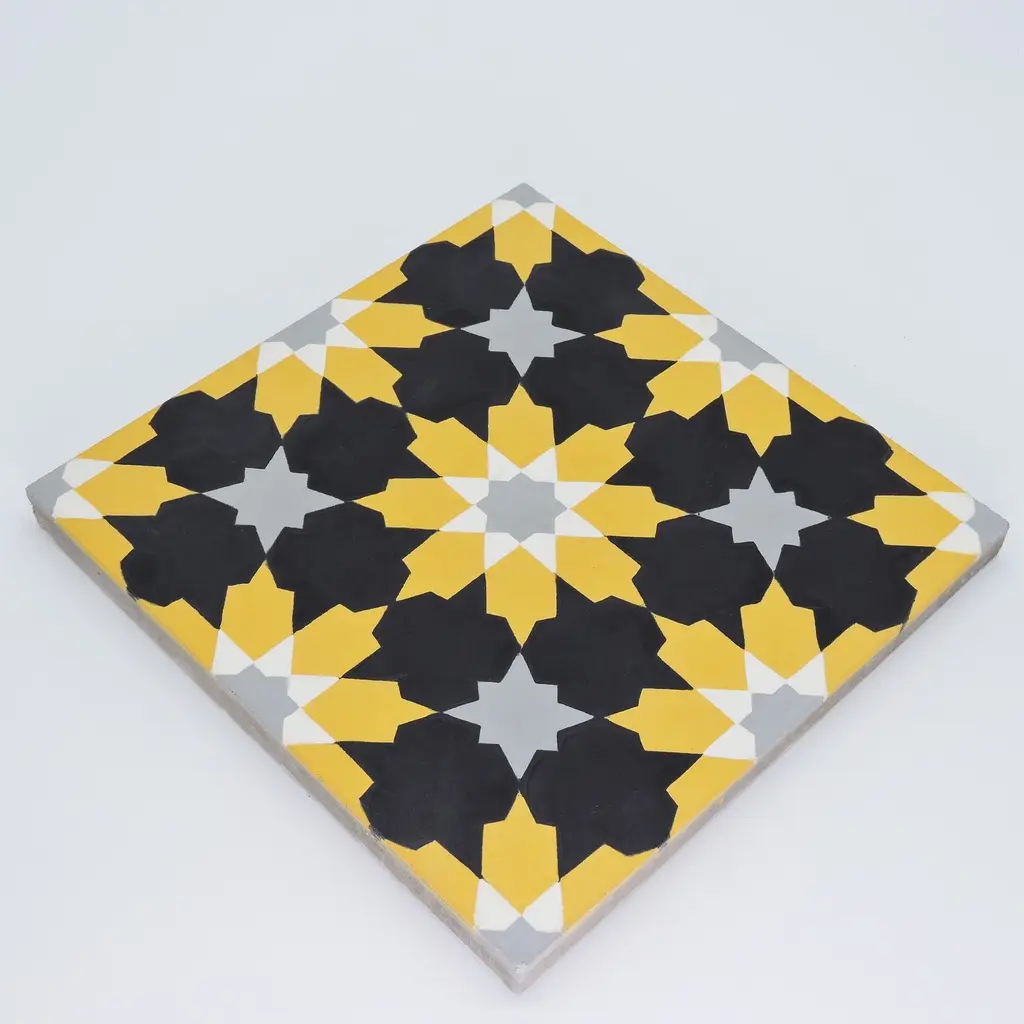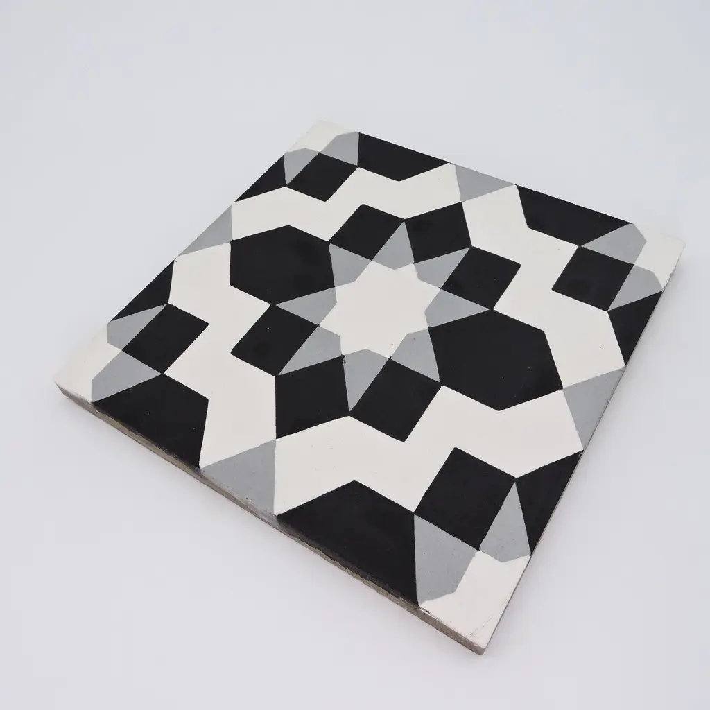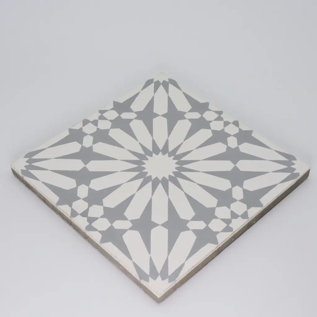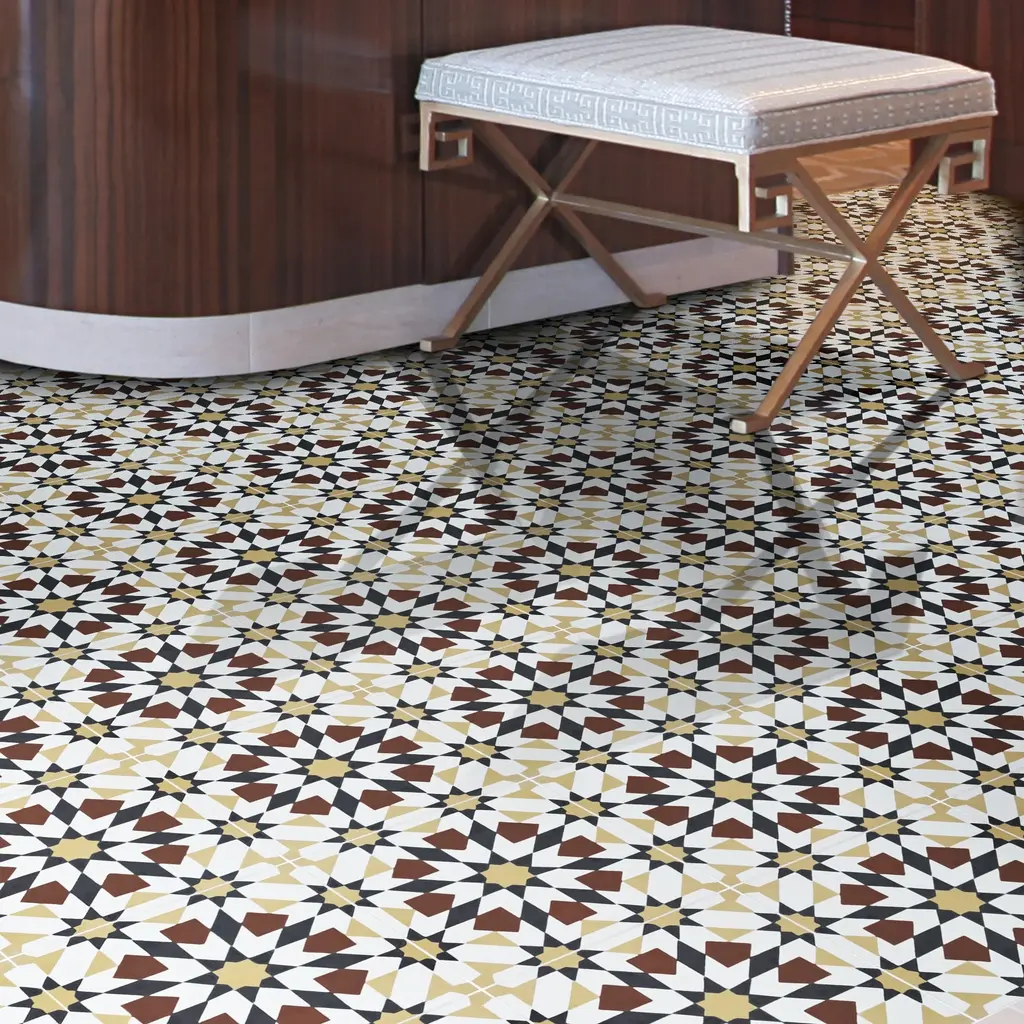Tamaris is an authentic cement tile that includes both traditional Moroccan culture and modernity. Its design and pattern will go well with any style trying to be achieved. Its white, black, and brown colors will offer a rustic ambience. Tamaris is suitable for walls and floors in your home.Features:- Crafted in Morocco- Moroccan Mosaic and Tile House Brand- Floor and Wall tiles- Eco-friendly- Handmade- Cement, Granite- Brown, Black, Off-White- Installation: Easy to install; It is recommended you purchase a minimum of 10% overage to account for design cuts and installation purposes.- Commercial and Residential use.- Outdoor or Indoor Use .- 2.3 tiles per square foot- Pack of 12 tiles when ordering a box (8x8), Sample is 1 tile only- 5.22 square feet per box- Tile measures 8 inches long x 8 inches wide x 0.5 inches thick