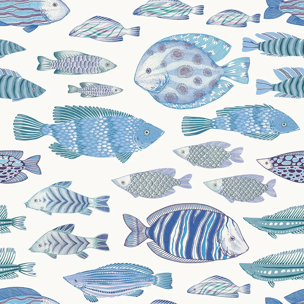 Anthozoa Wallpapers - Kamanu. Large-scale hand-painted fish with metallic touches glide across this stunning wallpaper that glistens as the light catches it. This wallpaper is a must for all of us who dream of an underwater world! Gravure Printed Wallpaper. Sold by the 11-yard roll. Part of the ANTHOZOA Collection. Vertical Repeat: 27.007874015748 Horizontal Repeat: 0 Aftercare Codes: Good L F / Offset Match / PTW / Wash This item is non-refundable, but swatches are available for purchase. Colors can vary from screen to screen; we recommend ordering a swatch before placing your full size purchase. For any questions, please reach out to swatches@chairish.com