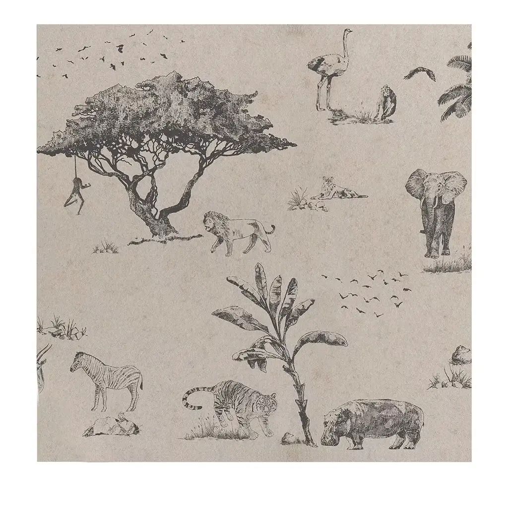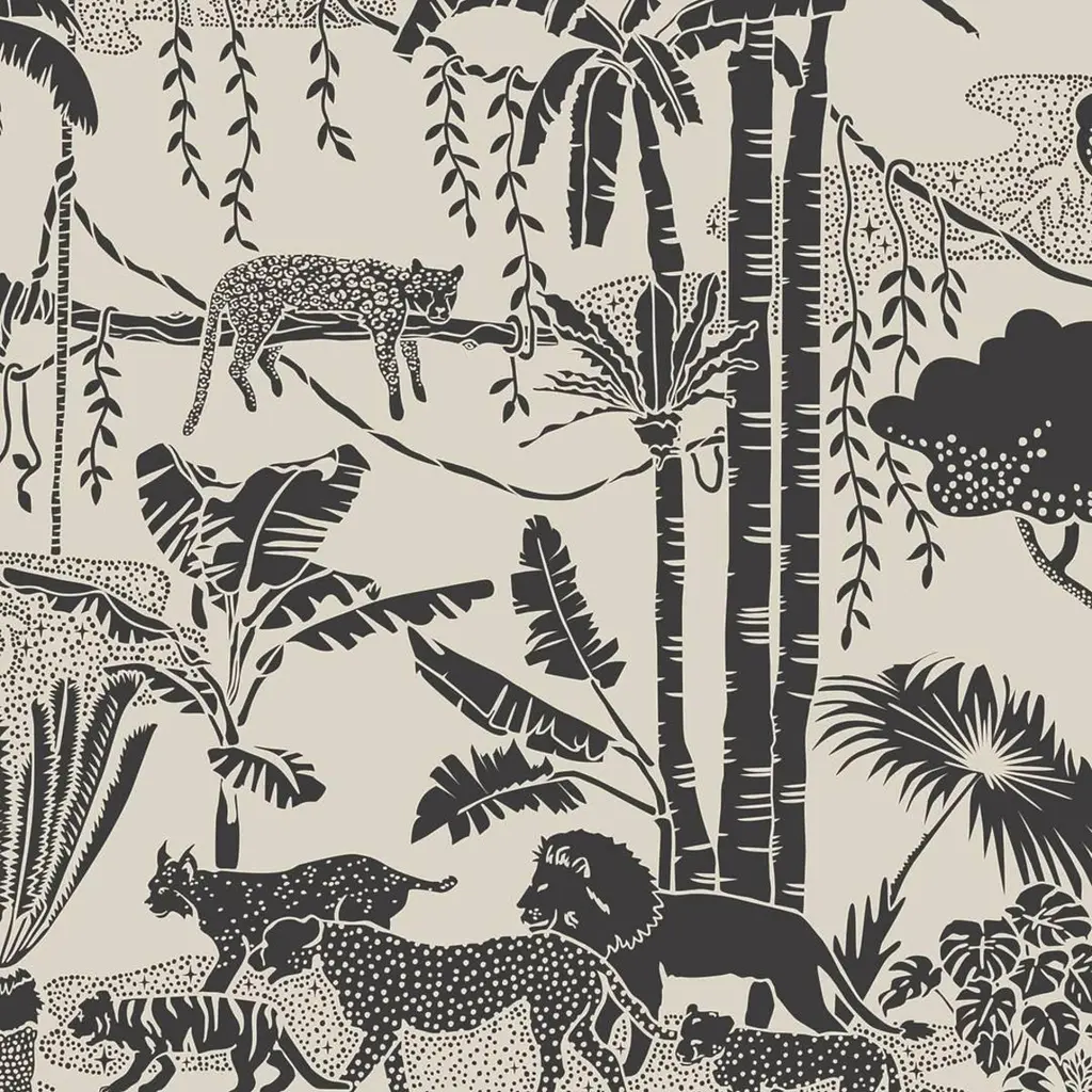 This striking modern toile was hand drawn in the Harlequin studio using a fine ink pen. Look carefully at the wonderfully detailed design and see zebras leopards giraffes monkeys and a tiny parrot shaded by beautifully shaped trees. Rotary/Gravure Wide Width Printed Wallpaper. Sold by the 11-yard roll. Part of the MIRADOR WALLPAPERS Collection. Vertical Repeat: 27.007874015748 Horizontal Repeat: 0 Aftercare Codes: Good L F / Offset Match / PTW / Wash This item is non-refundable, but swatches are available for purchase. Colors can vary from screen to screen; we recommend ordering a swatch before placing your full size purchase. For any questions, please reach out to swatches@chairish.com