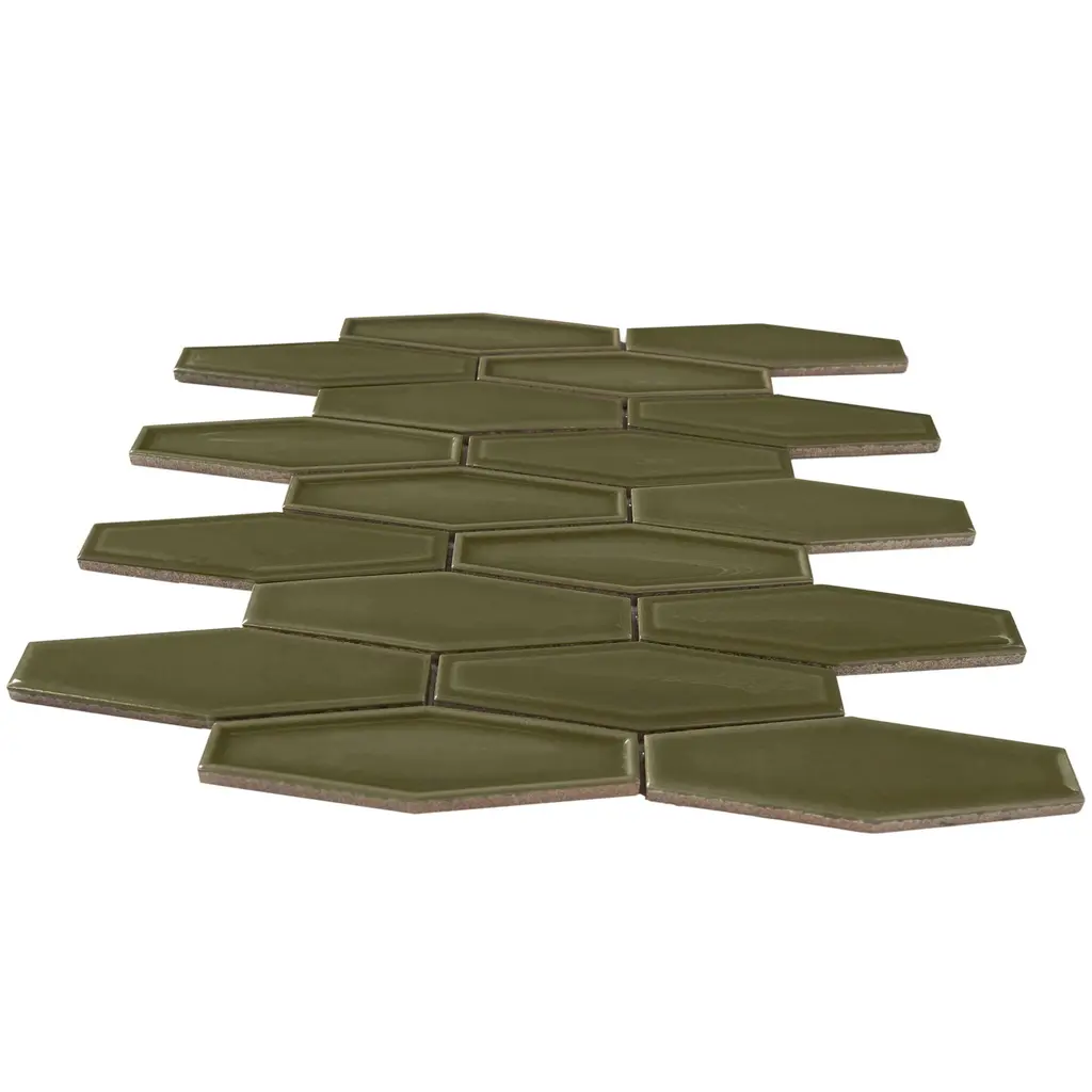 Honeycomb 1.5" X 4.9" Glossy Porcelain Mosaic Tile - Sample - Green