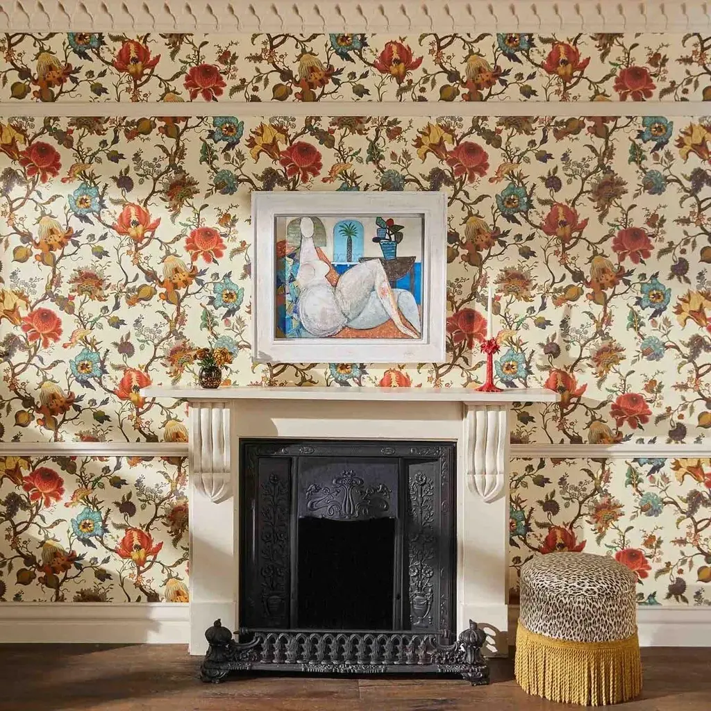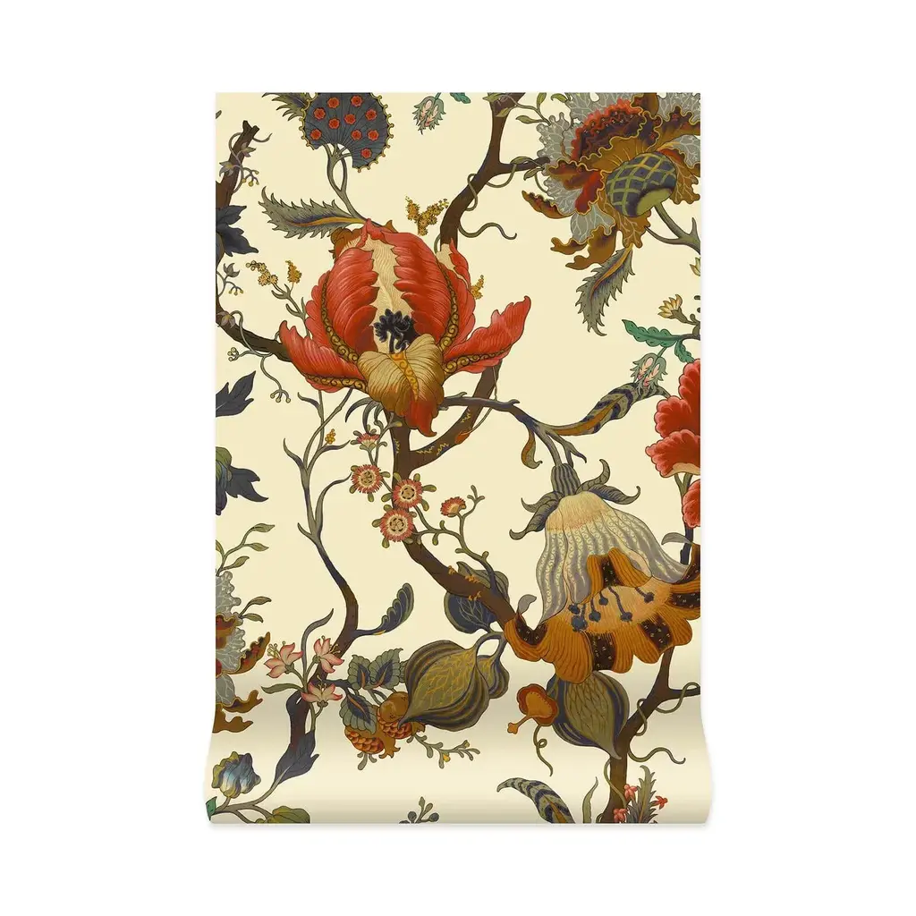 Originally inspired by the floral wallpaper used in Diana Vreeland's 'Garden in Hell' room, 'Artemis' is one of House of Hackney's most iconic and awe-inspiring prints. A Jacobean-inspired design that showcases an abundance of psychedelic flowers, this ecru colourway holds antique appeal. A combination of muted reds, teals and faded ochres make this an exquisite addition to your interiors scheme. Our wallpaper is produced using PVC-free, eco-friendly materials and promises minimal environmental impact at every stage of production.