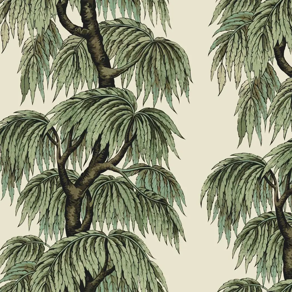 Our luxury 'Babylon' wallpaper in papyrus is a contemporary alternative to a cream-based interiors colour palette, bringing nature into the home in the process. Inspired by 1950s Palm Springs, it features the willow tree's majestic boughs in a pattern reminiscent of iconic Art Deco design. Our wallpaper is made using PVC-free, eco-friendly materials and promises minimal environmental impact at every stage of production.