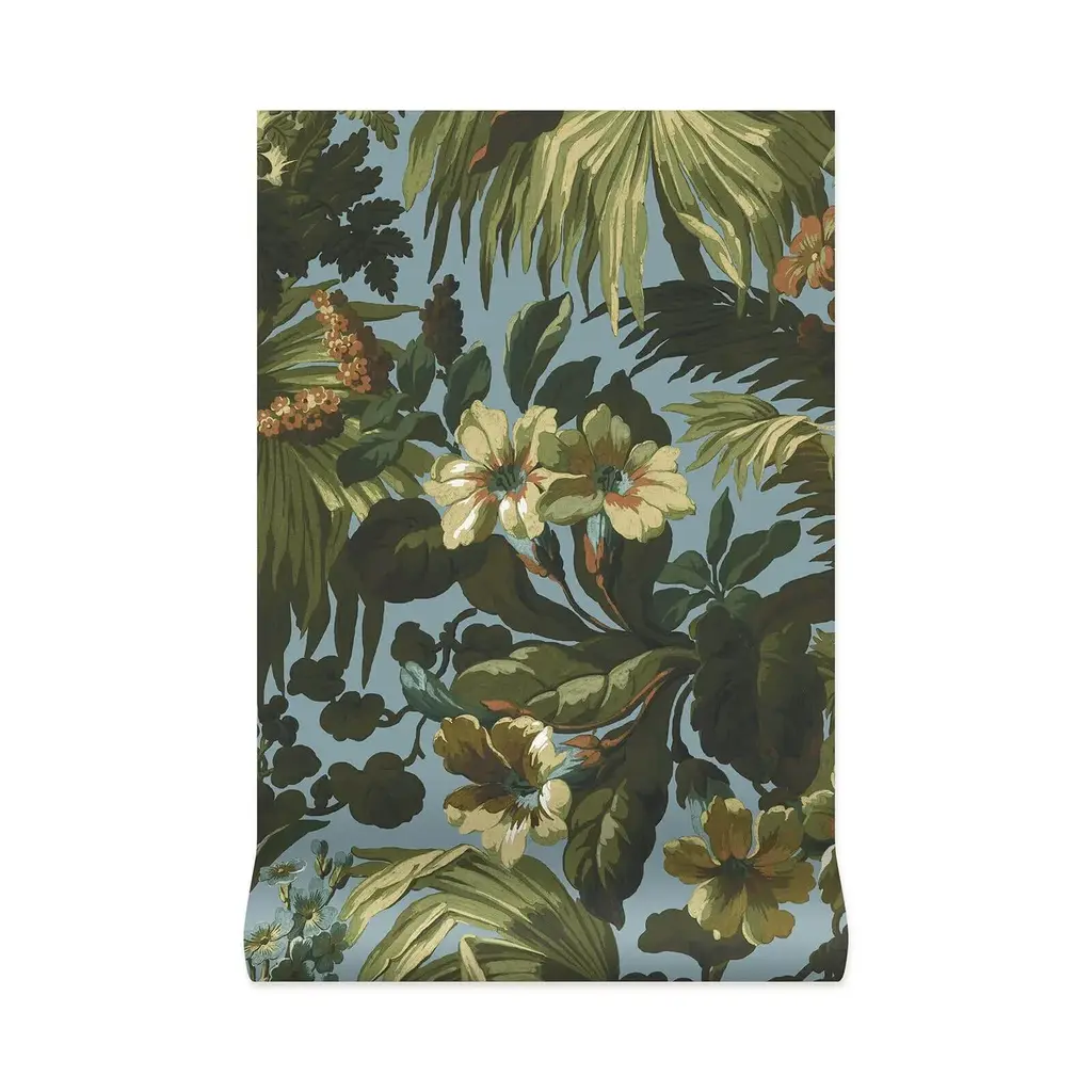 A truly tropical masterpiece, the 'LIMERENCE' print really comes to life in this vivid sky-blue and luscious green colourway. Inspired by the rich and verdant landscape of Sri Lanka, this painterly wallpaper is the perfect way to bring the outdoors into the home. 'Limerence' was originally launched in collaboration with elegant Mayfair club, 'Annabel's' to a dazzling reception. Our wallpaper is made using PVC-free, eco-friendly materials and promises minimal environmental impact at every stage of production.