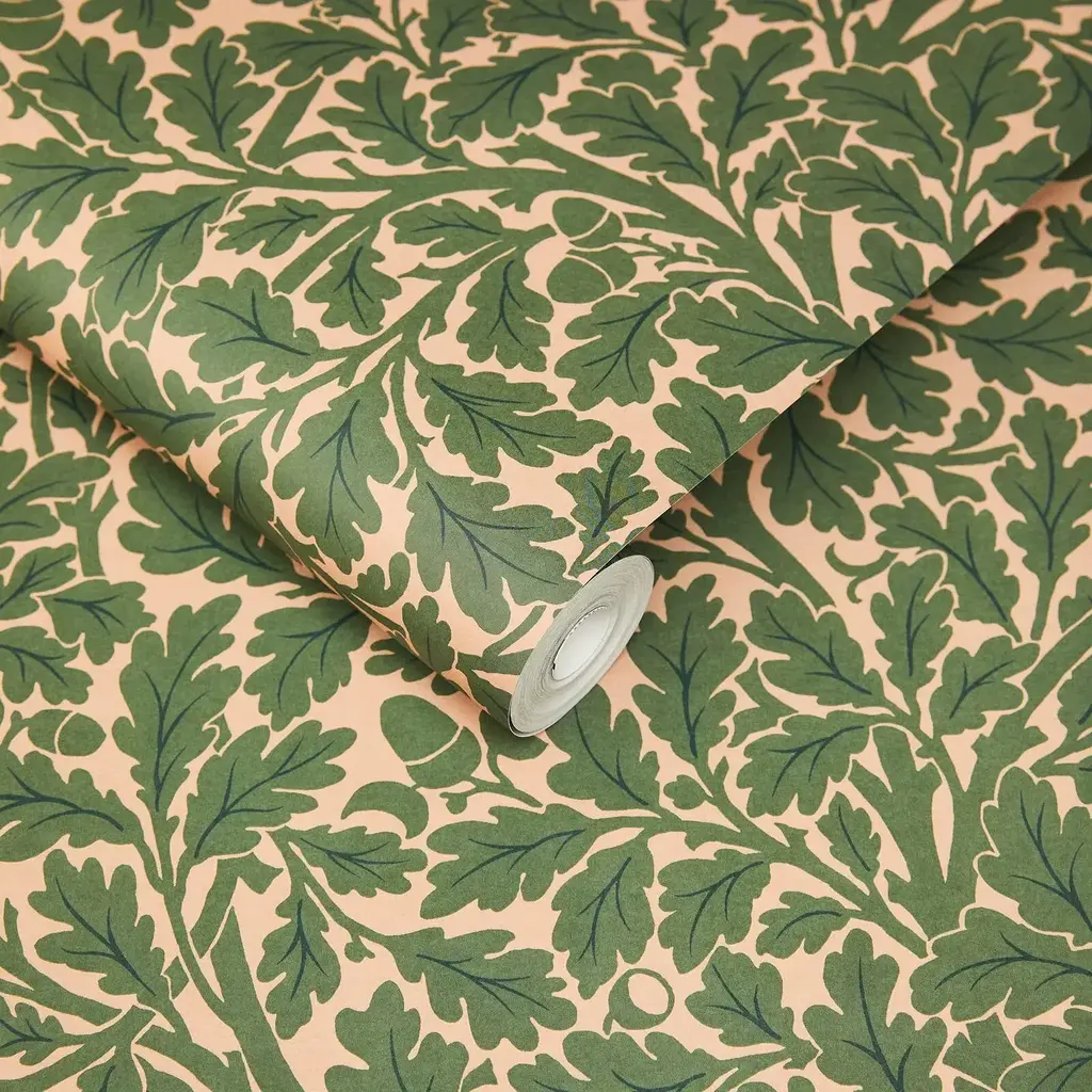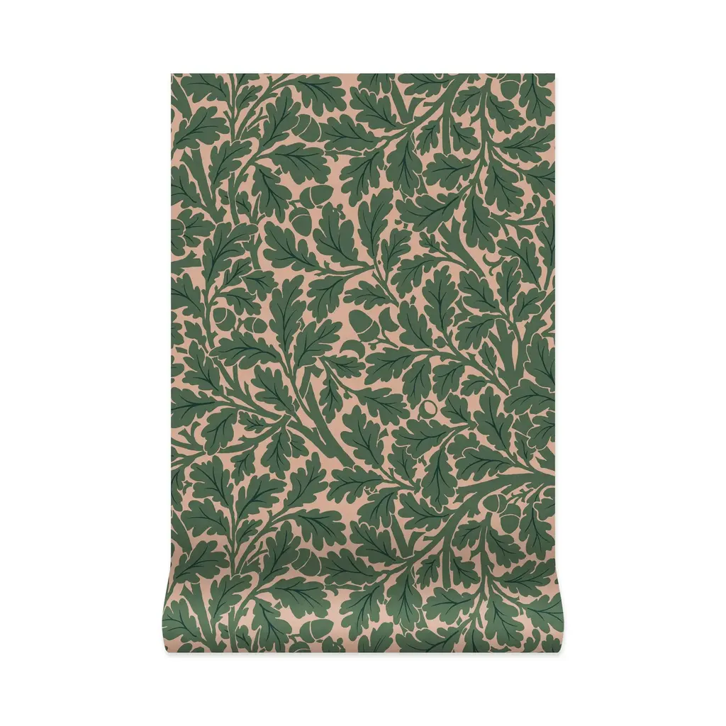 Bring the beauty of nature into your home with QUERCUS. Inspired by our design hero William Morris’s Acorn print, let this botanical beauty give life to your walls. An ancient symbol of wisdom, strength and endurance, our oak leaf print is a wise choice for adding a touch of the outside world to your interior - even if we do say so ourselves! In serene ‘Tourmaline’, forest green leaves ascend to the heavens against a background of blushing pink. Our wallpaper is made using PVC-free, eco-friendly materials and promises minimal environmental impact at every stage of production.