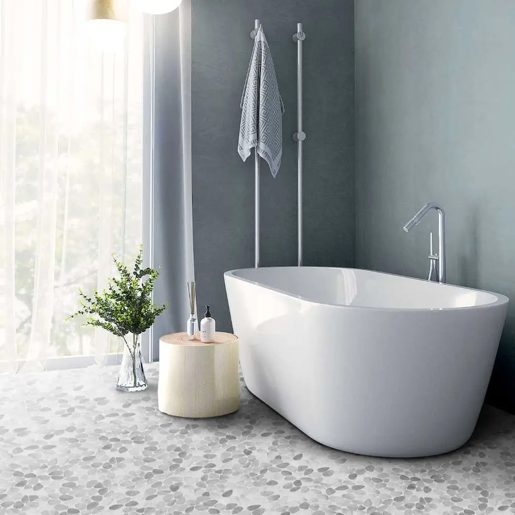 Step into a world of serene nature with our Huron collection. Available in ten natural colors, these mosaics mimic the raw appeal of authentic rock, all featuring subtle color variations that create a dynamic look that will stun guests. Each rock's diverse shapes and sizes give it the perfect organic and textural look that sustainable home designers are looking for. Ideal for any shower wall, pool, floor, or wall installation. FEATURES: DIMENSIONS: