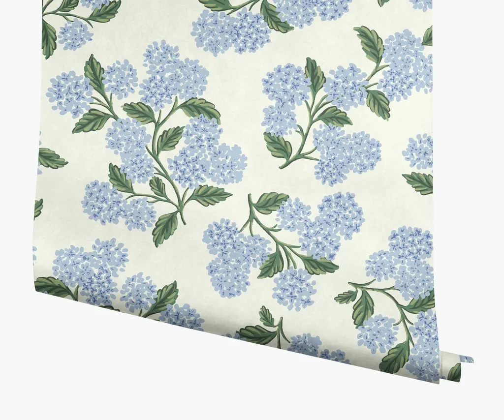 8 × 10" sample of our Hydrangea peel & stick wallpaper. In this timeless pattern, clusters of delicate hydrangeas lend an elegant garden feel to your space. Please note that wallpaper samples are cut at random, and pattern placement of the sample you receive will not match the photo featured here.