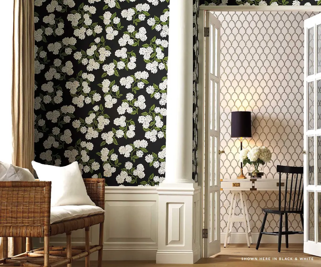 8 × 10" sample of our Hydrangea wallpaper. Clusters of hydrangeas are an elegant and timeless way to bring a garden into your space. Please note that wallpaper samples are cut at random, and pattern placement of the sample you receive will not match the photo featured here.