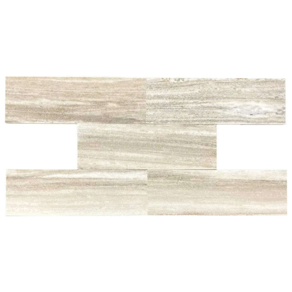 Introducing Ivory 3"x8" Split Face Tile - a beautiful and versatile tile that adds texture and warmth to any space. Made from premium quality natural stone, each tile boasts a unique and captivating texture that showcases the natural beauty of the material. The thin split face design creates a modern and contemporary look, while the ivory color adds a touch of warmth and elegance to your space. The 3x8 size of each tile makes it perfect for a variety of applications, including accent walls, fireplace surrounds, backsplashes, and more. Whether you're looking to create a sleek and modern living room or a warm and inviting bathroom, Ivory 3"x8" Split Face Tile is a perfect choice that will add texture and character to any space. Invest in the modern elegance of Ivory 3"x8" Split Face Tile and transform your space into a work of art.What's included?Product Details Sample Details