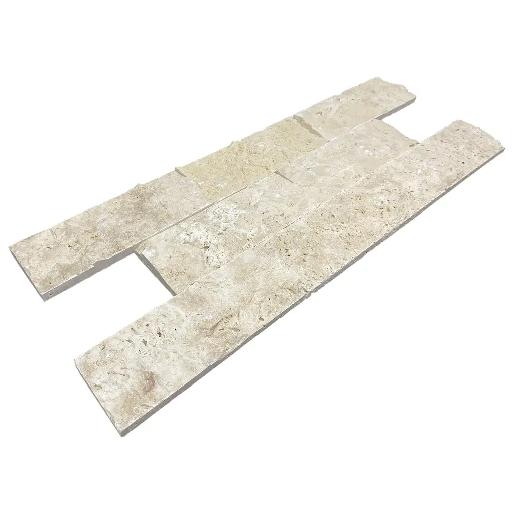 Ivory Travertine 3" X 8" Split Face Tile - Sample - White