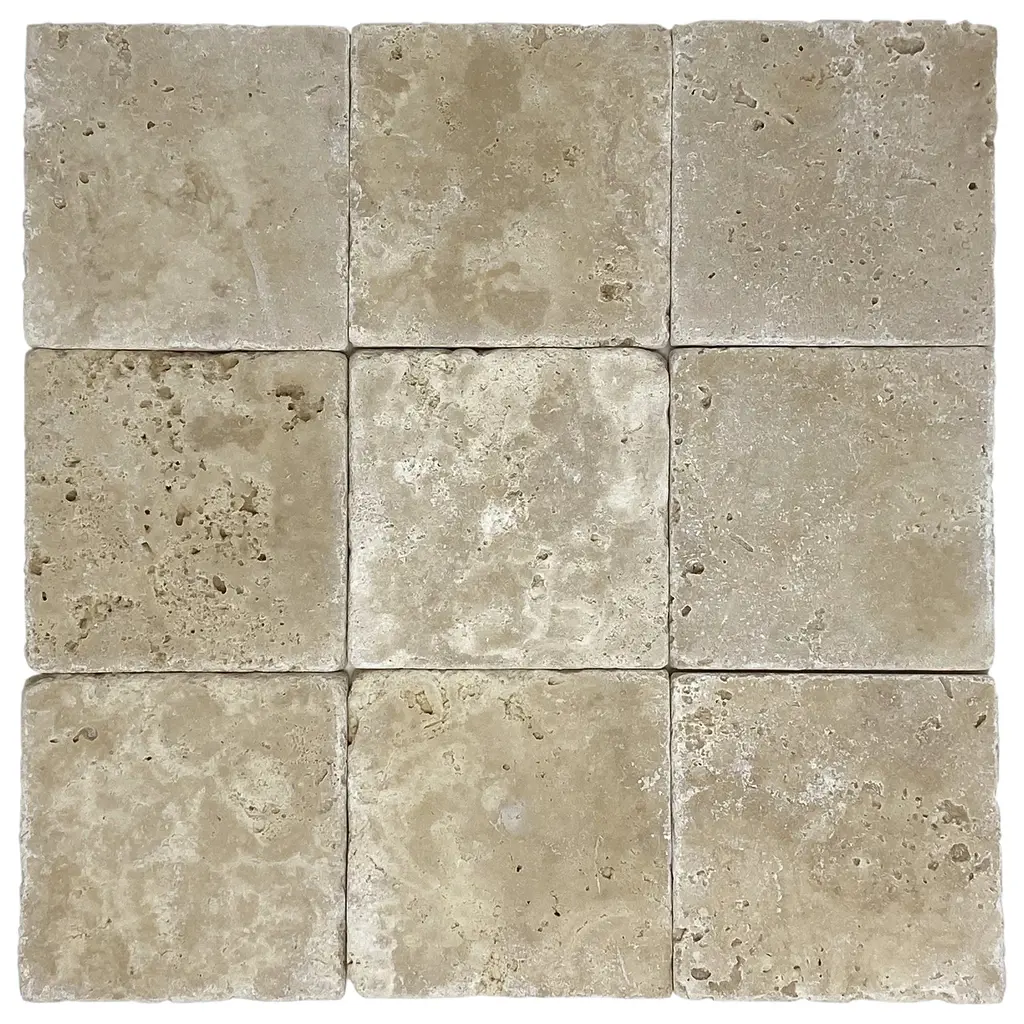 Ivory Travertine 4" X 4" Tumbled Tile - Sample (1 Piece)