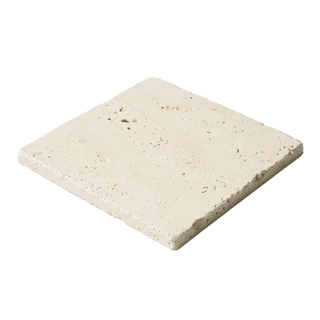 Ivory Travertine 6" X 6" Tumbled Tile - Sample - White