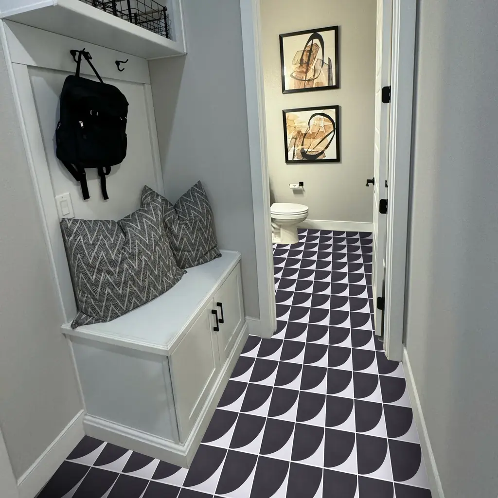 Jardin Handmade Cement Tile, 8X8, White-Black - Sample-1Tile