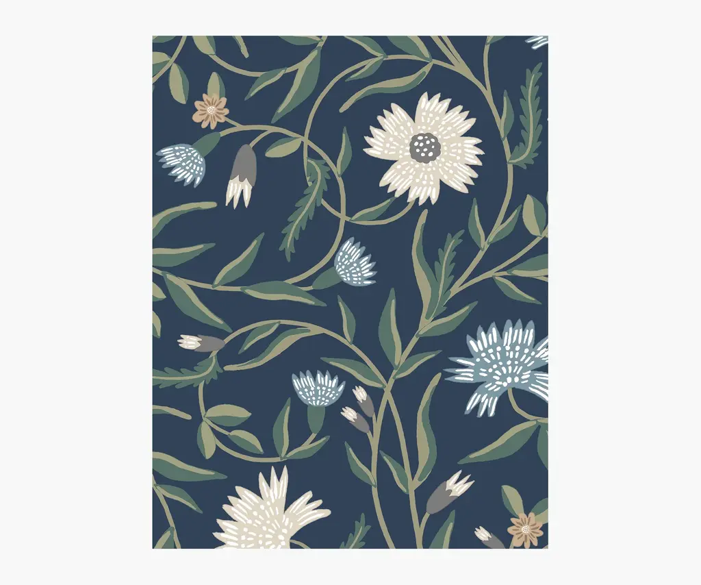 8 × 10" sample of our Juniper Forest wallpaper. Bring the outdoors in with Juniper Forest, a layered, woodsy design, featuring clusters of berries, hanging moss, and pinecones tucked into rambling stems and branches. Please note that wallpaper samples are cut at random, and pattern placement of the sample you receive will not match the photo featured here.