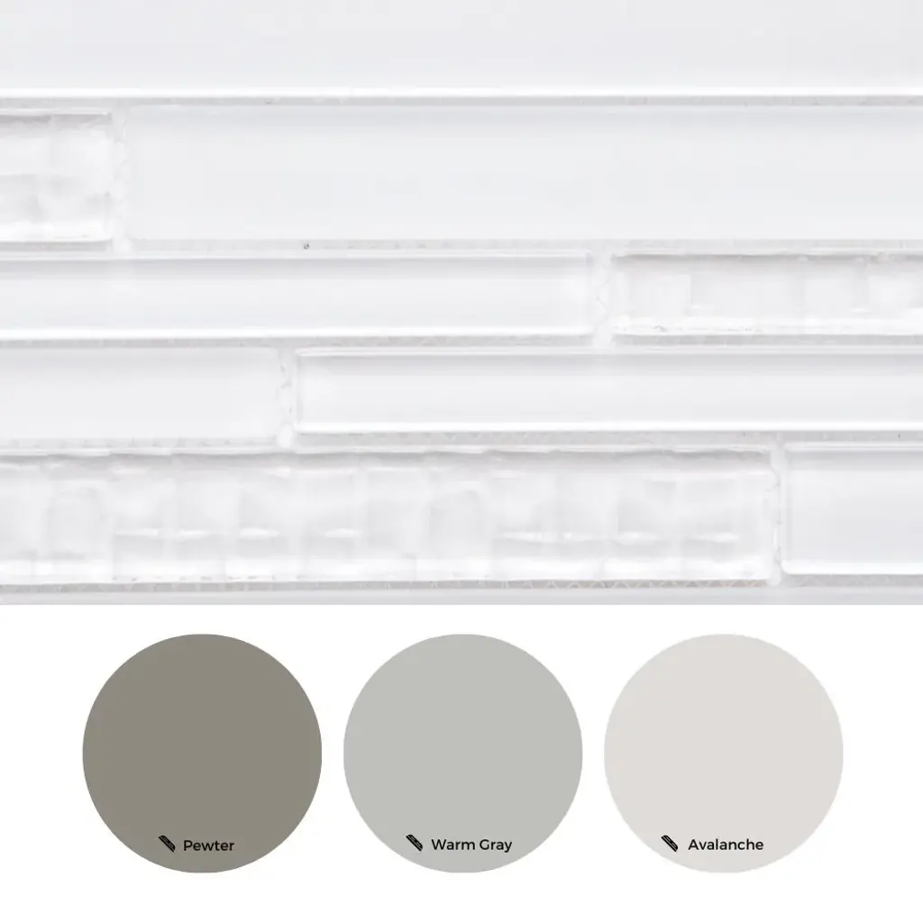 Say hello to our Karma Glass Mosaic line! This beautiful textured mixed brick tile glass mosaic comes in different colors. It has incredible features like 3D effects for a unique modern appearance. The Tile Life's Karma Glass Mosaic Tile can be used for backsplash and bathroom walls. Featuring a V2 slight variation, this rectified, straight-edge tile is perfect for creating stunning backsplashes, bathrooms, kitchens, and shower walls. Available in six elegant colors—Light Grey, Charcoal, White, Taupe, Cream, and Black—Karma tiles offer a sophisticated and versatile option for any residential indoor wall project. Sized at 12" x 12" and approved for residential use only. FEATURES:DIMENSIONS: