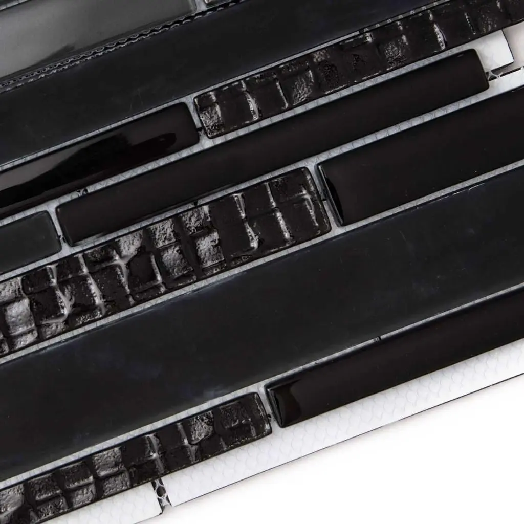 Say hello to our Karma glass mosaic line! This beautiful textured mixed brick mosaic comes in different colors. It has incredible features like 3D effects for a unique modern appearance. Karma can be used for backsplash and bathroom walls. FEATURES:DIMENSIONS:
