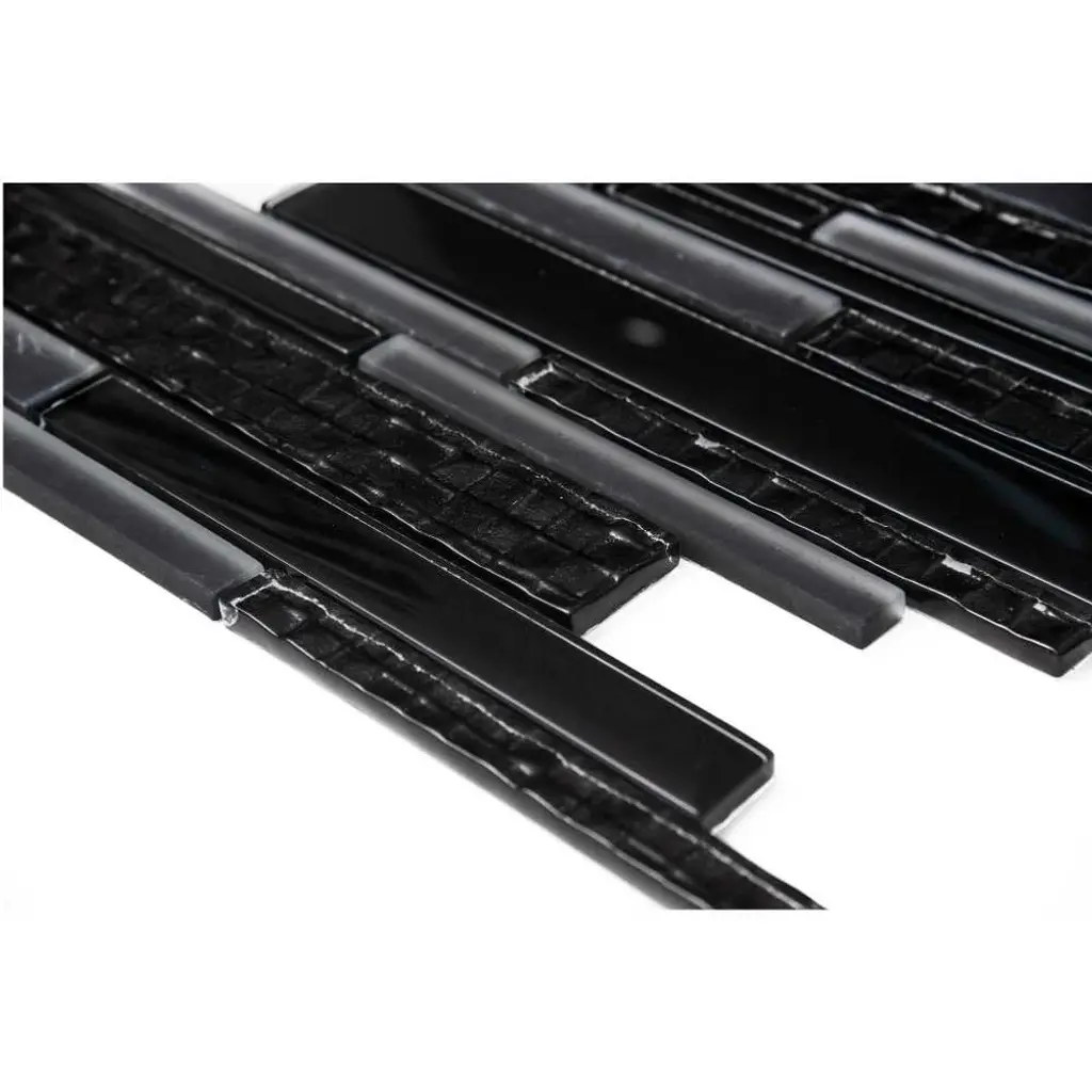 Karma Random Sized Brick Glass Backsplash Wall Tile - 4 X 4 Sample - Black